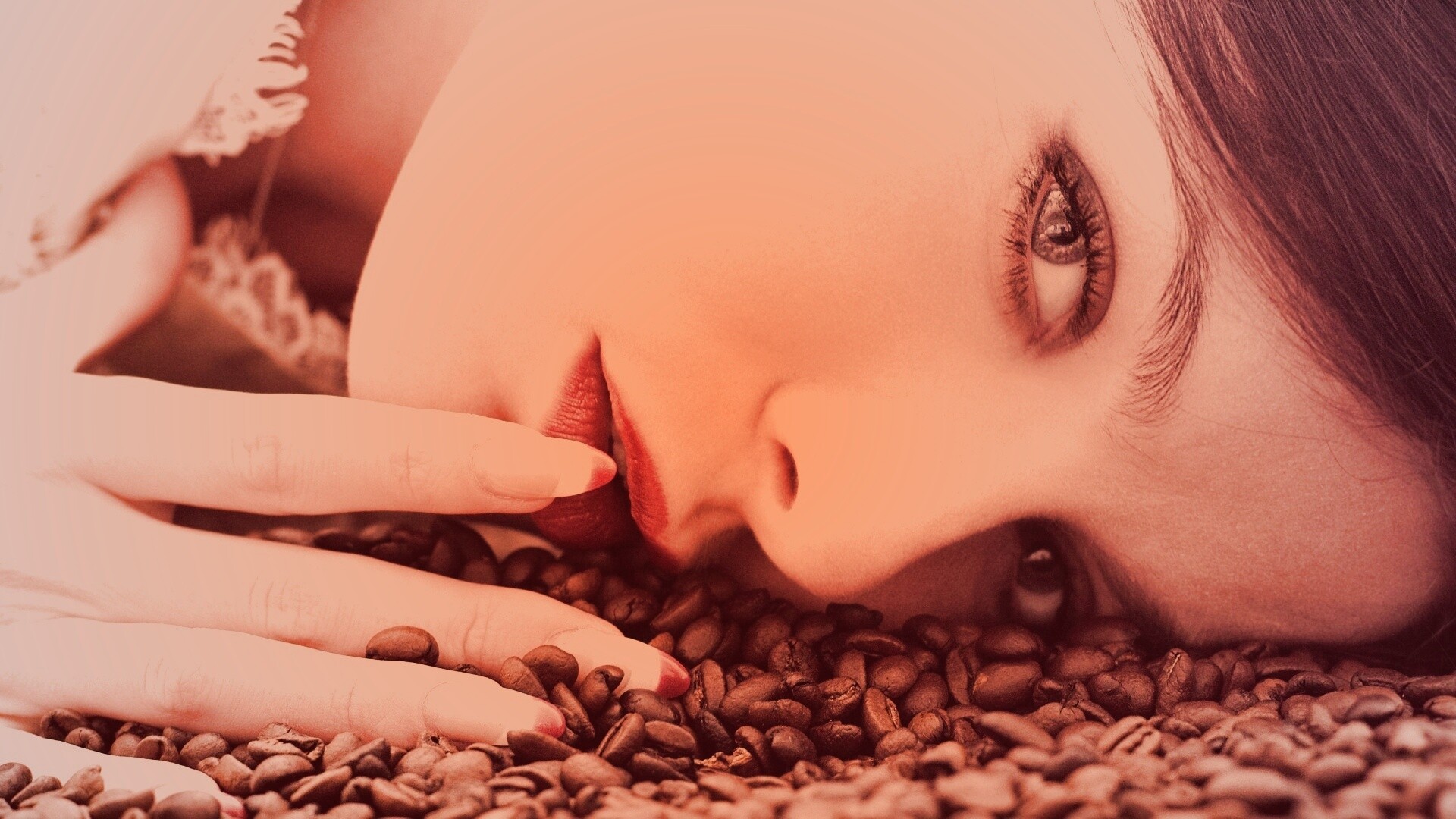 «Соблазнительная девушка с кофейными зернами»