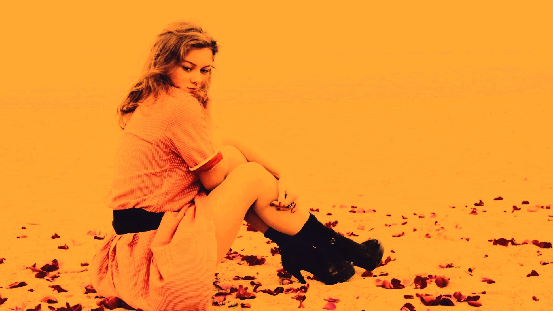 «Девушка среди лепестков на пляже»
