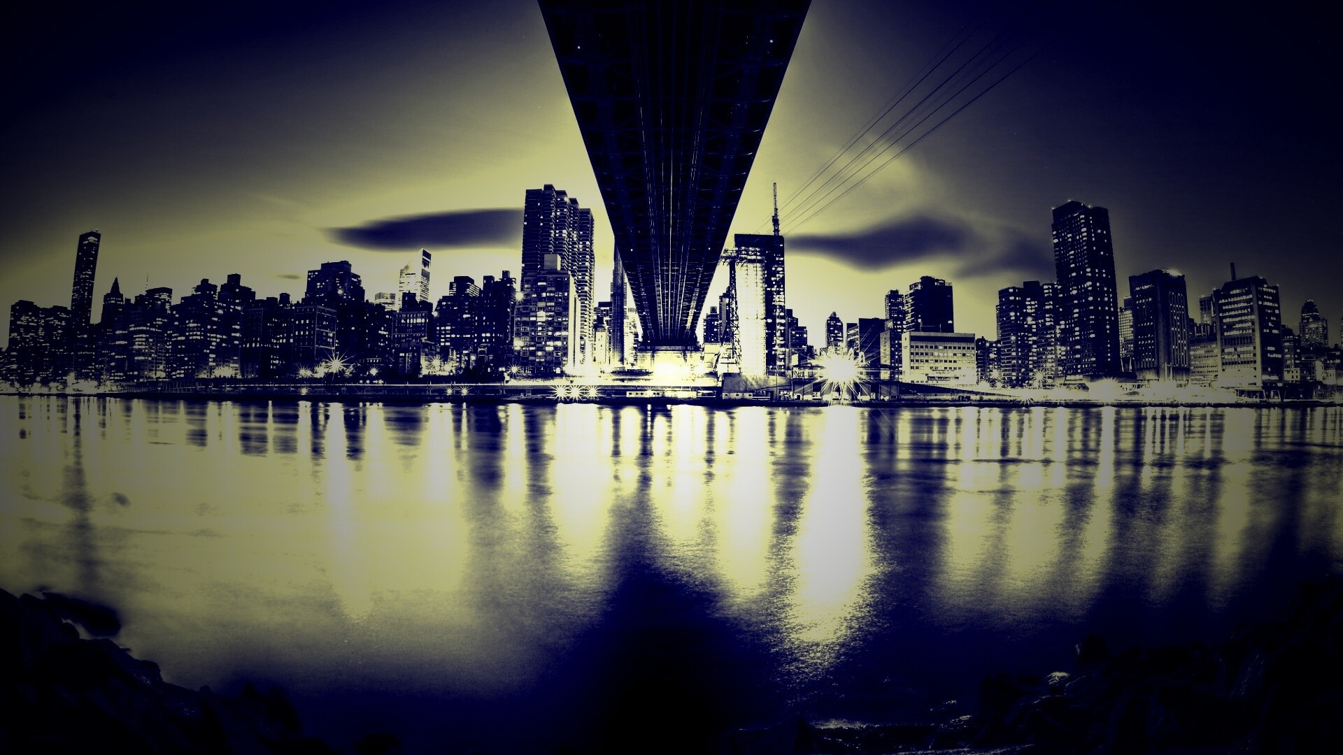 «Вид на Остров Рузвельта из-под моста Квиснборо»
