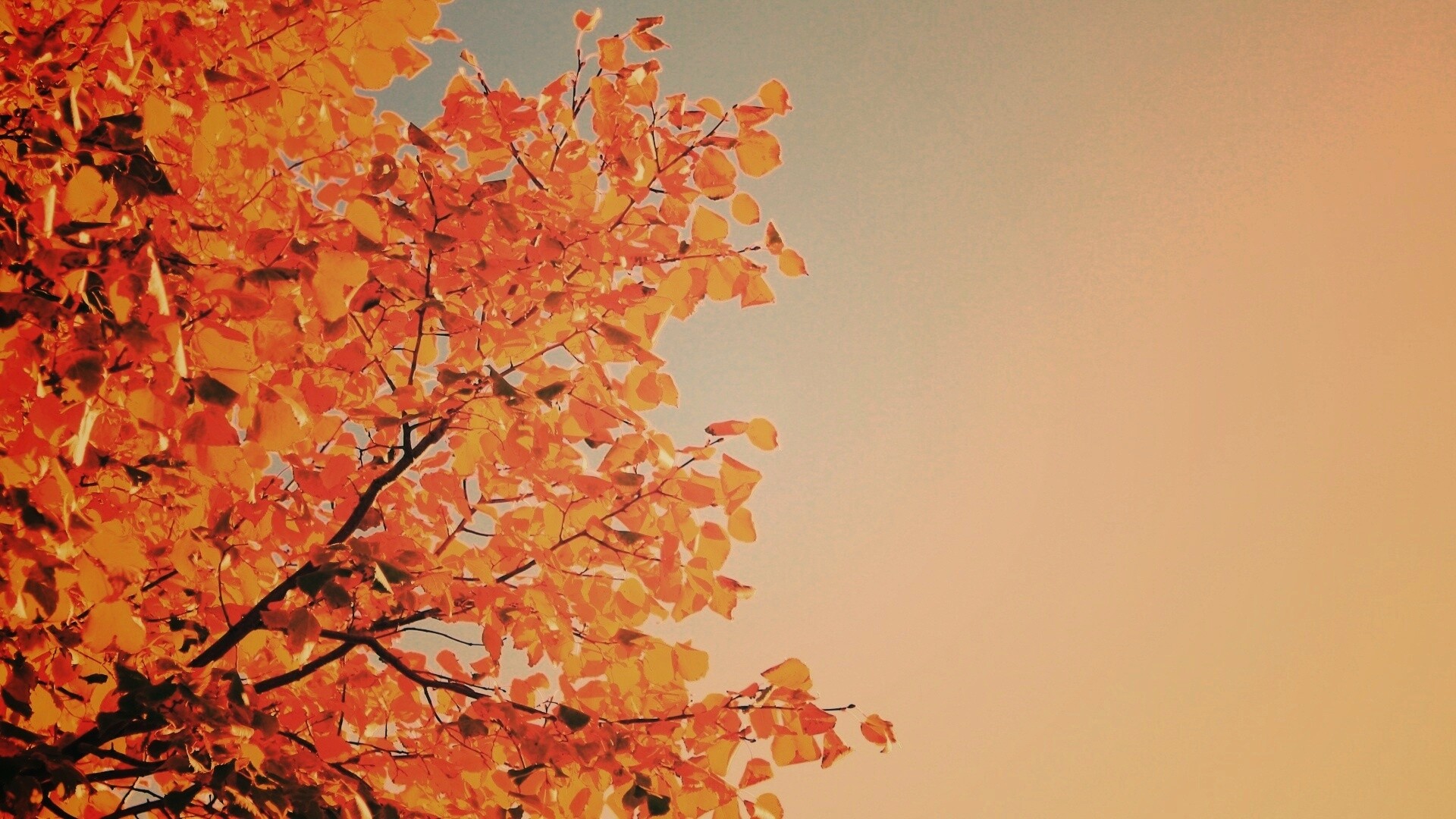 «Ветви с пожелтевшими листьями на фоне неба»
