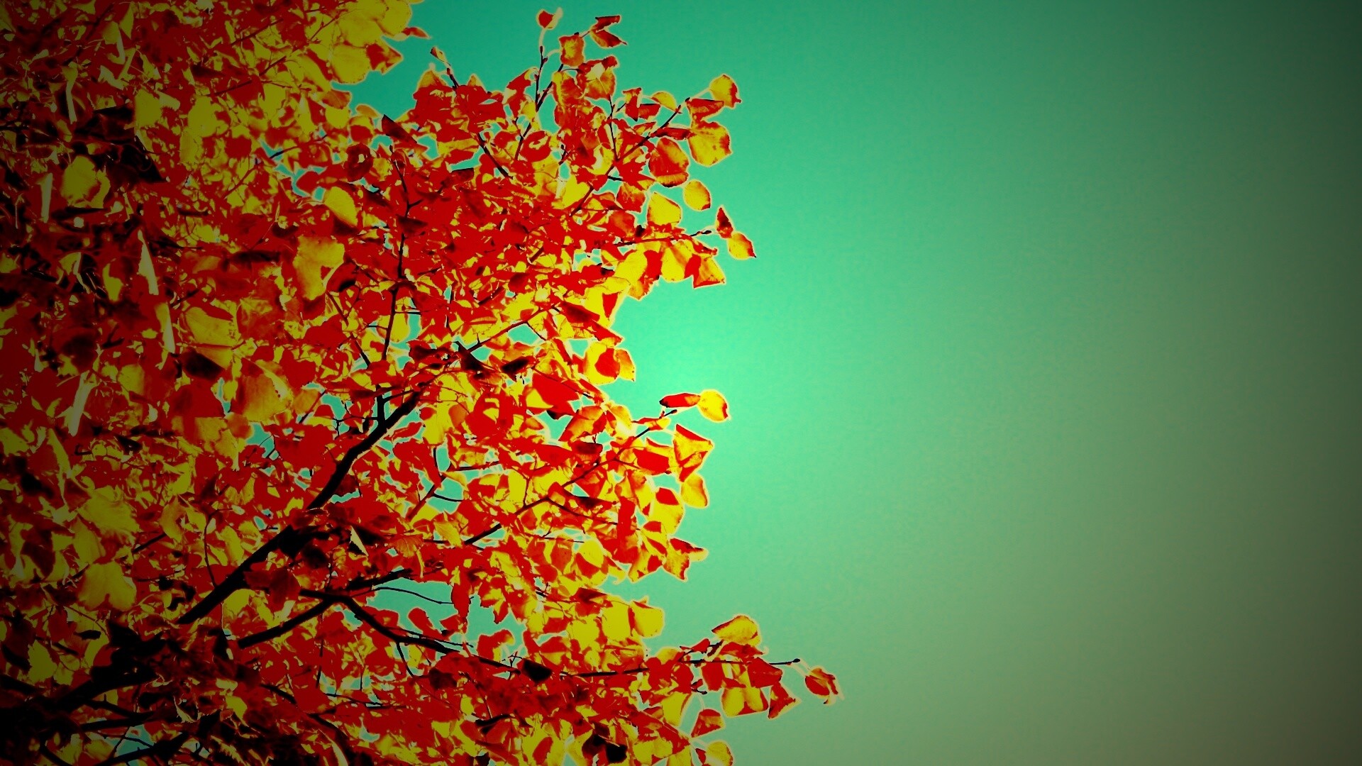 «Ветви с пожелтевшими листьями на фоне неба»