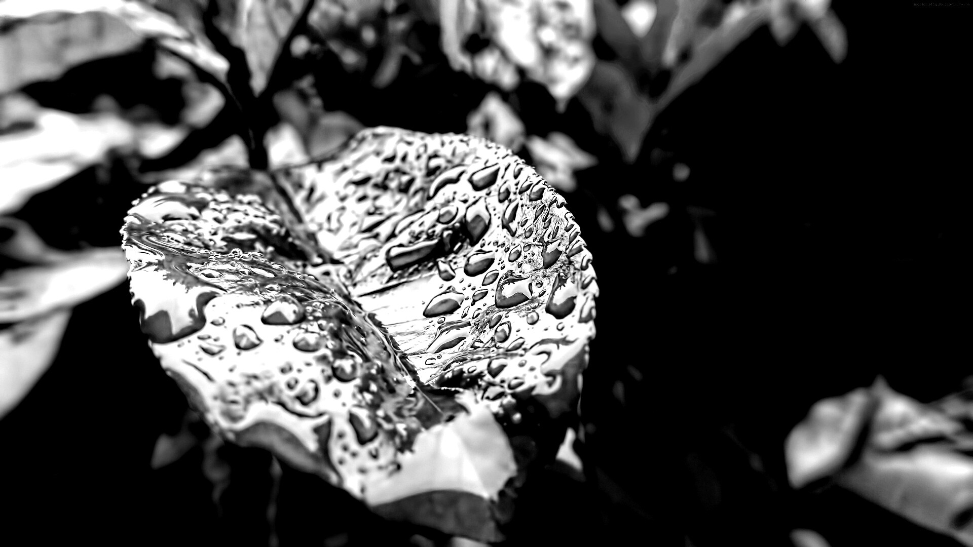 «Красный лист в каплях воды»
