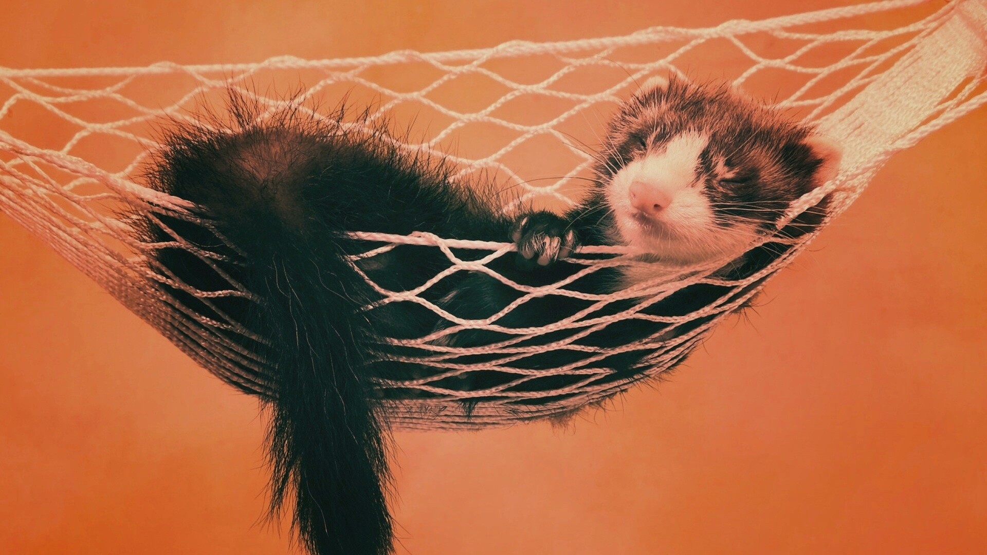 Обои для рабочего стола «Хорек в гамаке» 1920х1080 с фильтром earlybird (оригинал 2560х1600)