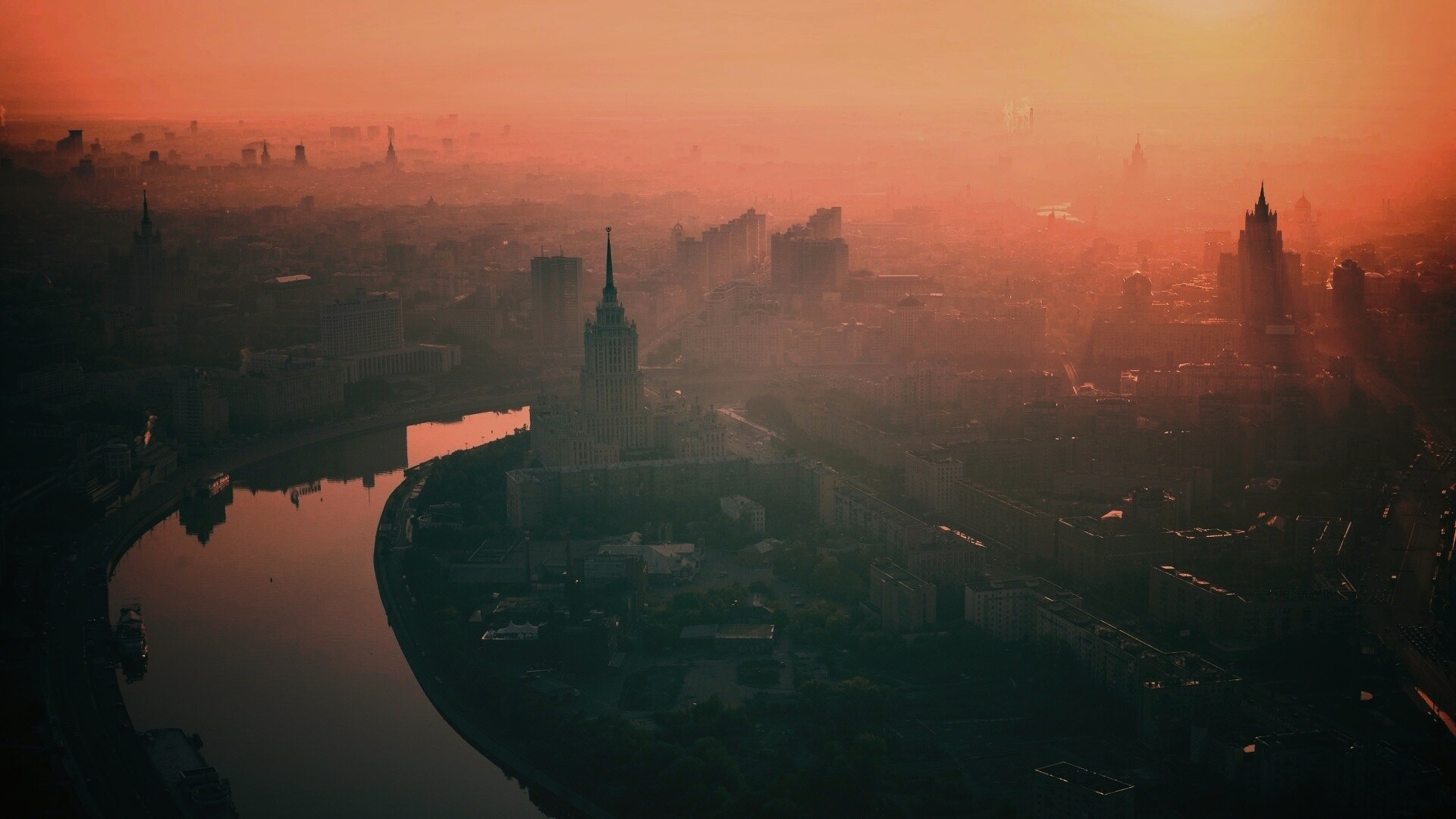 Обои для рабочего стола «Москва в тумане» 1920х1080 с фильтром earlybird (оригинал 2560х1600)
