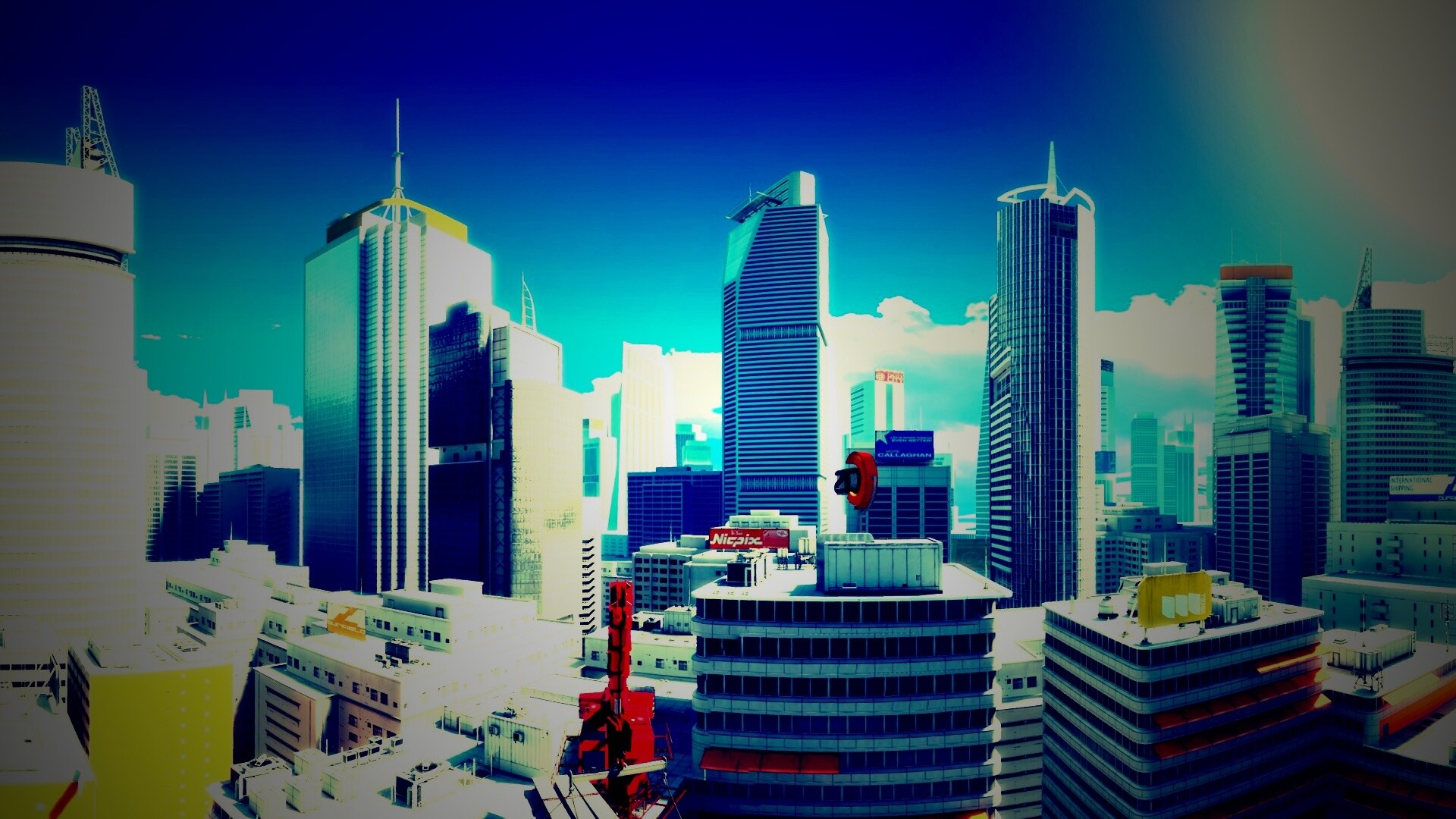 Обои для рабочего стола «Город Mirrors Edge» 1920х1080 с фильтром lomo (оригинал 2560х1024)