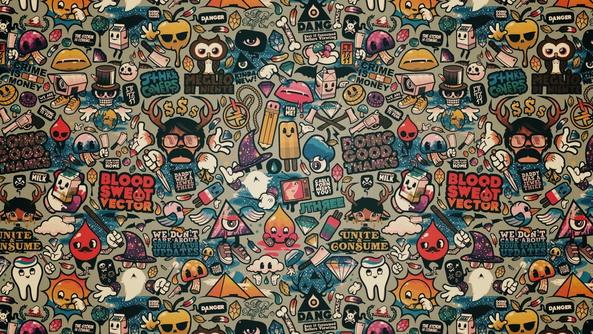 Обои для рабочего стола «Коллаж из мультяшных картинок» 1920х1080 с фильтром earlybird (оригинал 2560х1600)