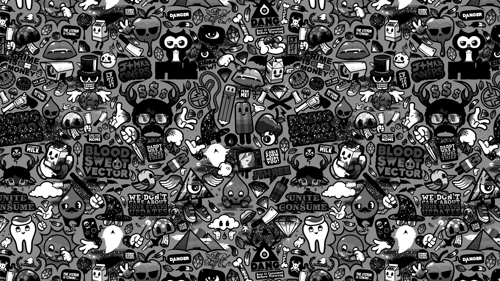 Обои для рабочего стола «Коллаж из мультяшных картинок» 1920х1080 с фильтром inkwell (оригинал 2560х1600)