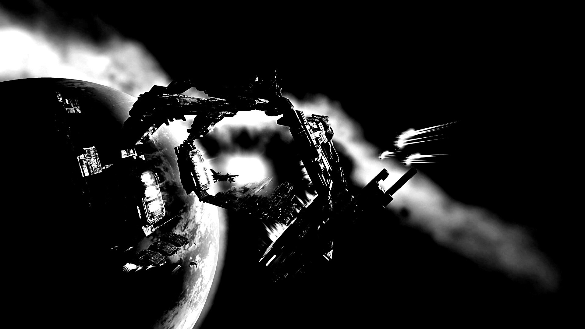 Обои для рабочего стола «Космический корабль» 1920х1080 с фильтром inkwell (оригинал 1920х1080)