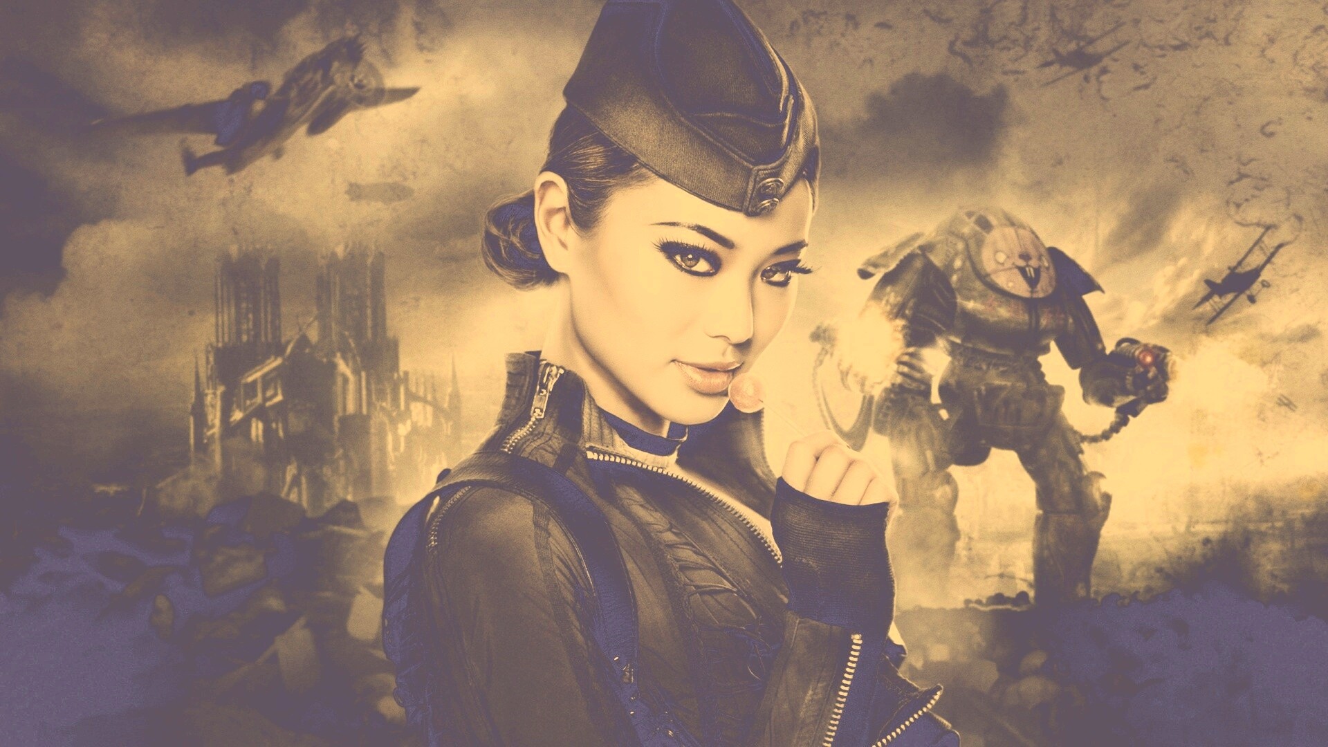 Обои для рабочего стола «Эмбер из Sucker Punch» 1920х1080 с фильтром nashville (оригинал 2560х4618)