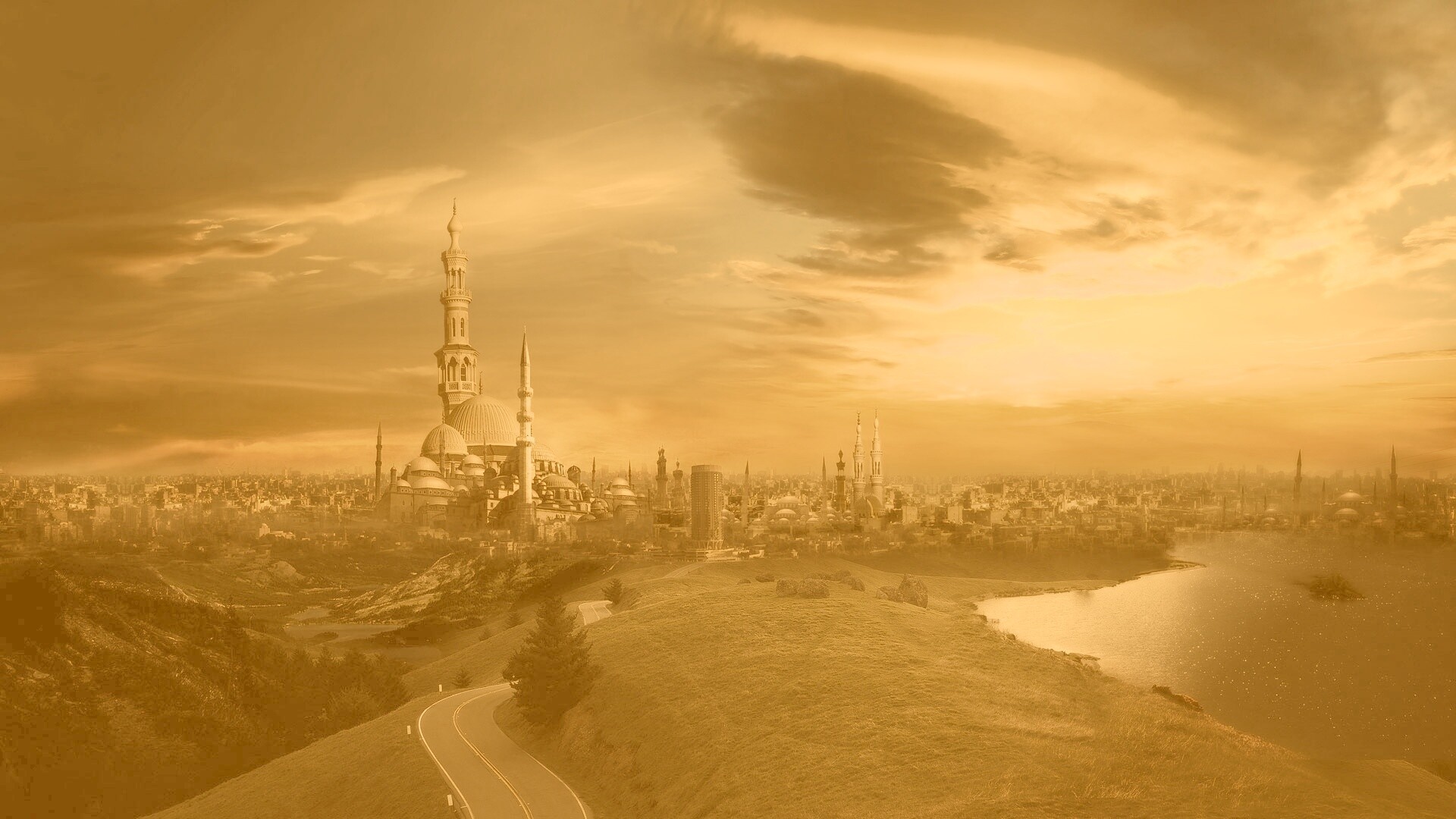 Обои для рабочего стола «Город минаретов» 1920х1080 с фильтром kelvin (оригинал 1920х1200)