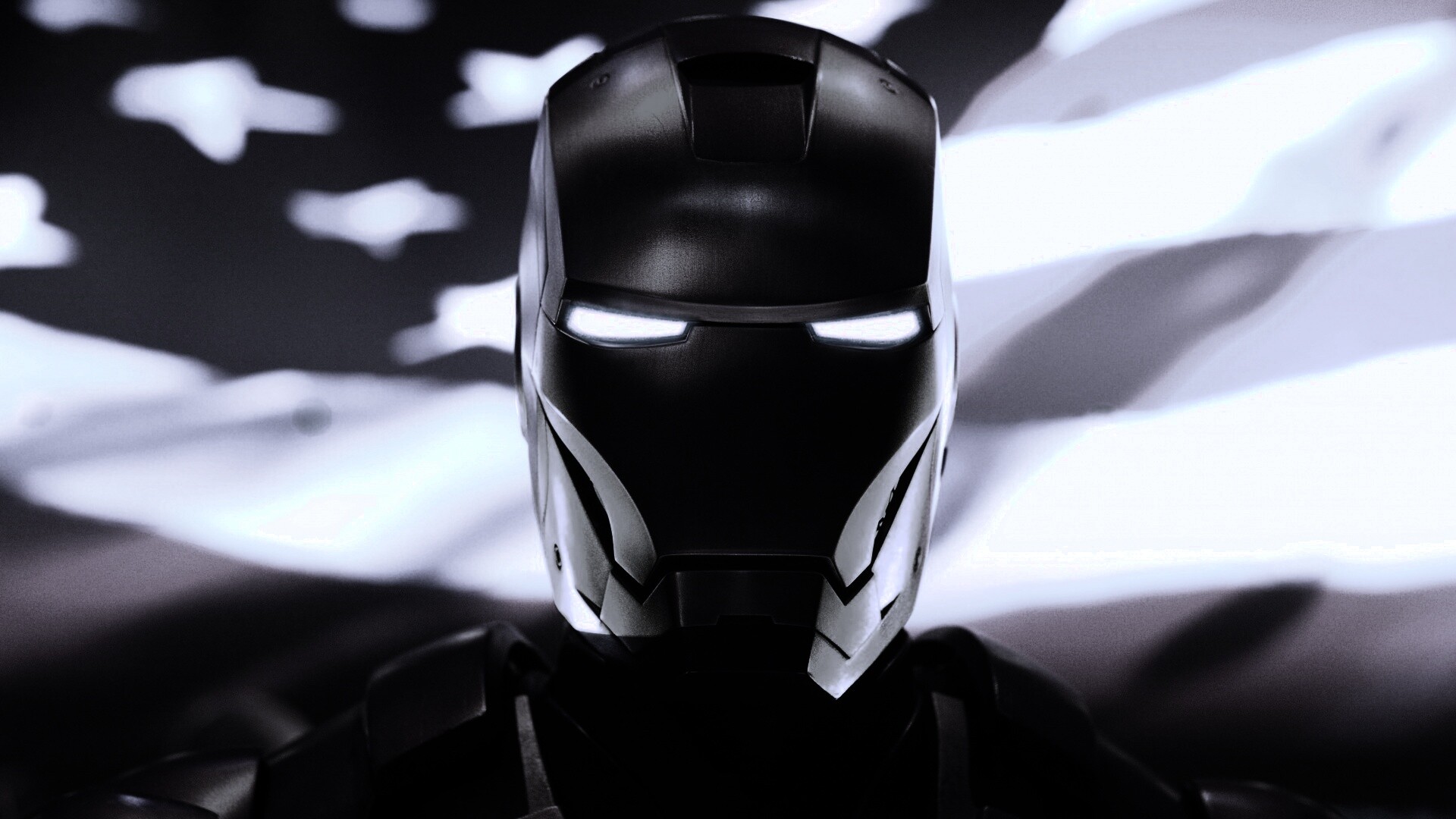 «Железный человек на фоне американского флага»