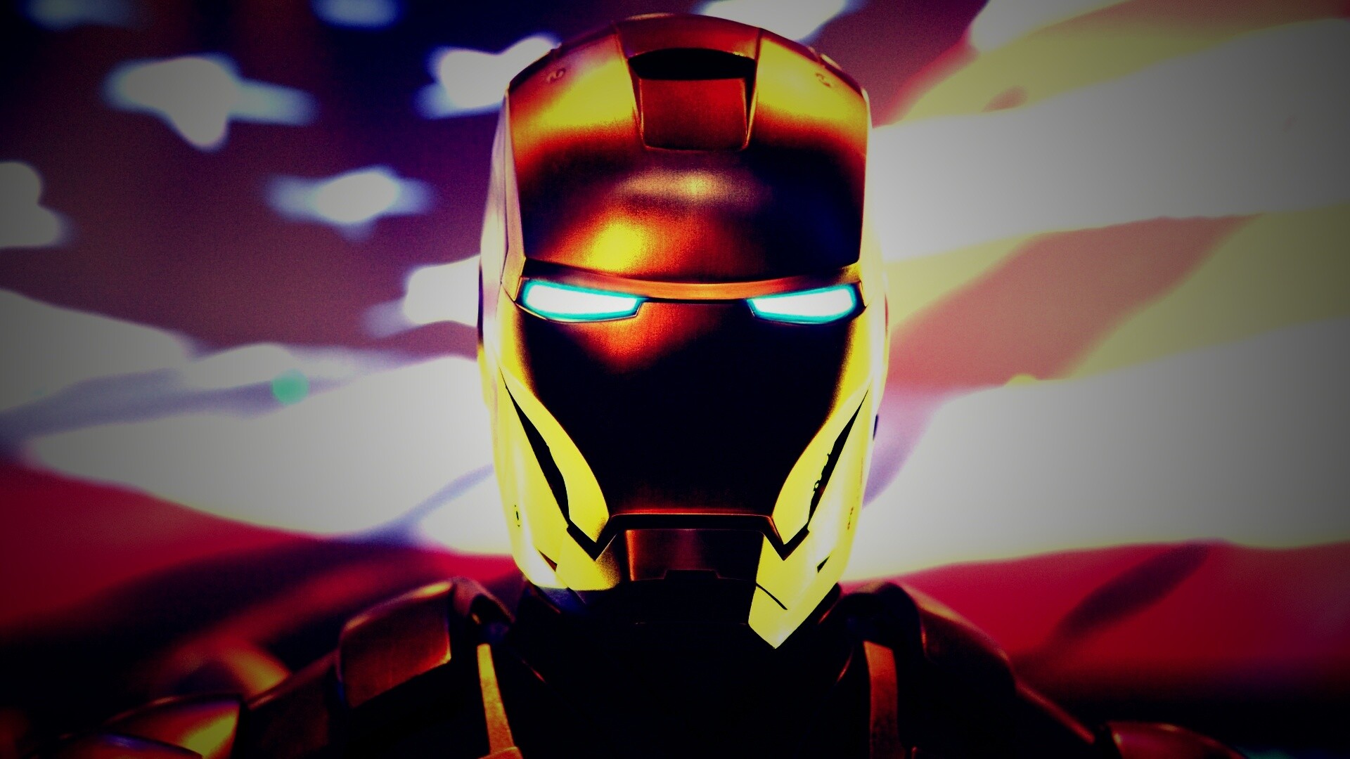 «Железный человек на фоне американского флага»