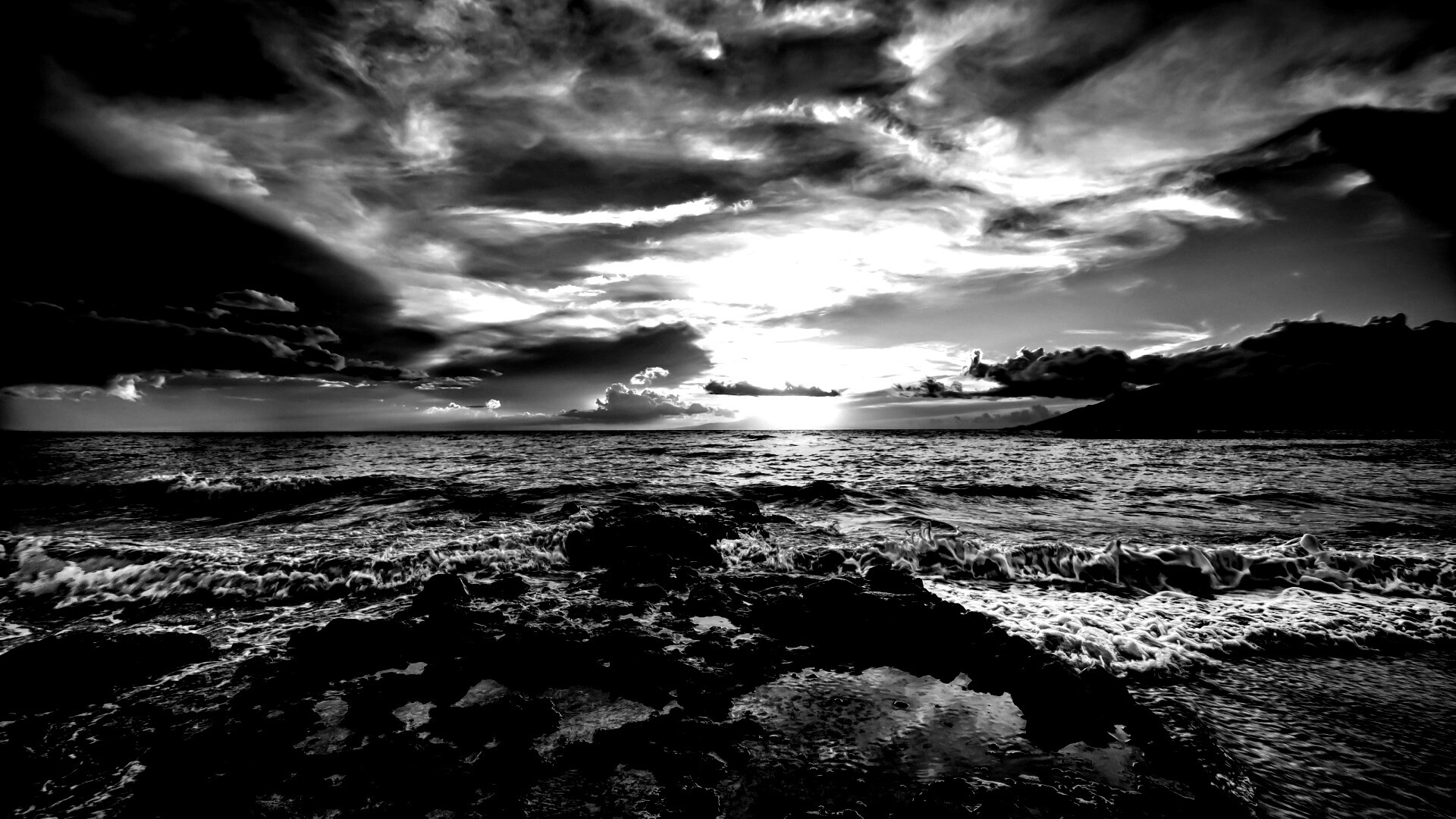 Обои для рабочего стола «Закат на море» 1920х1080 с фильтром inkwell (оригинал 3200х2000)