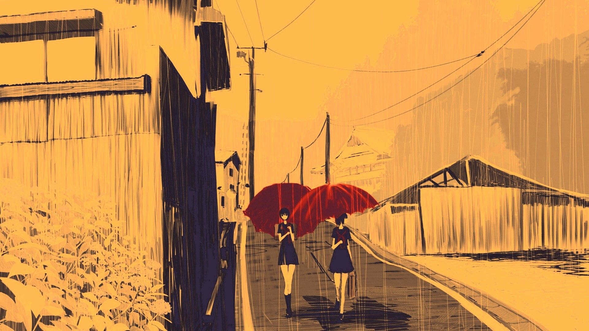 Обои для рабочего стола «Девушки с красными зонтами» 1920х1080 с фильтром nashville (оригинал 1920х1080)