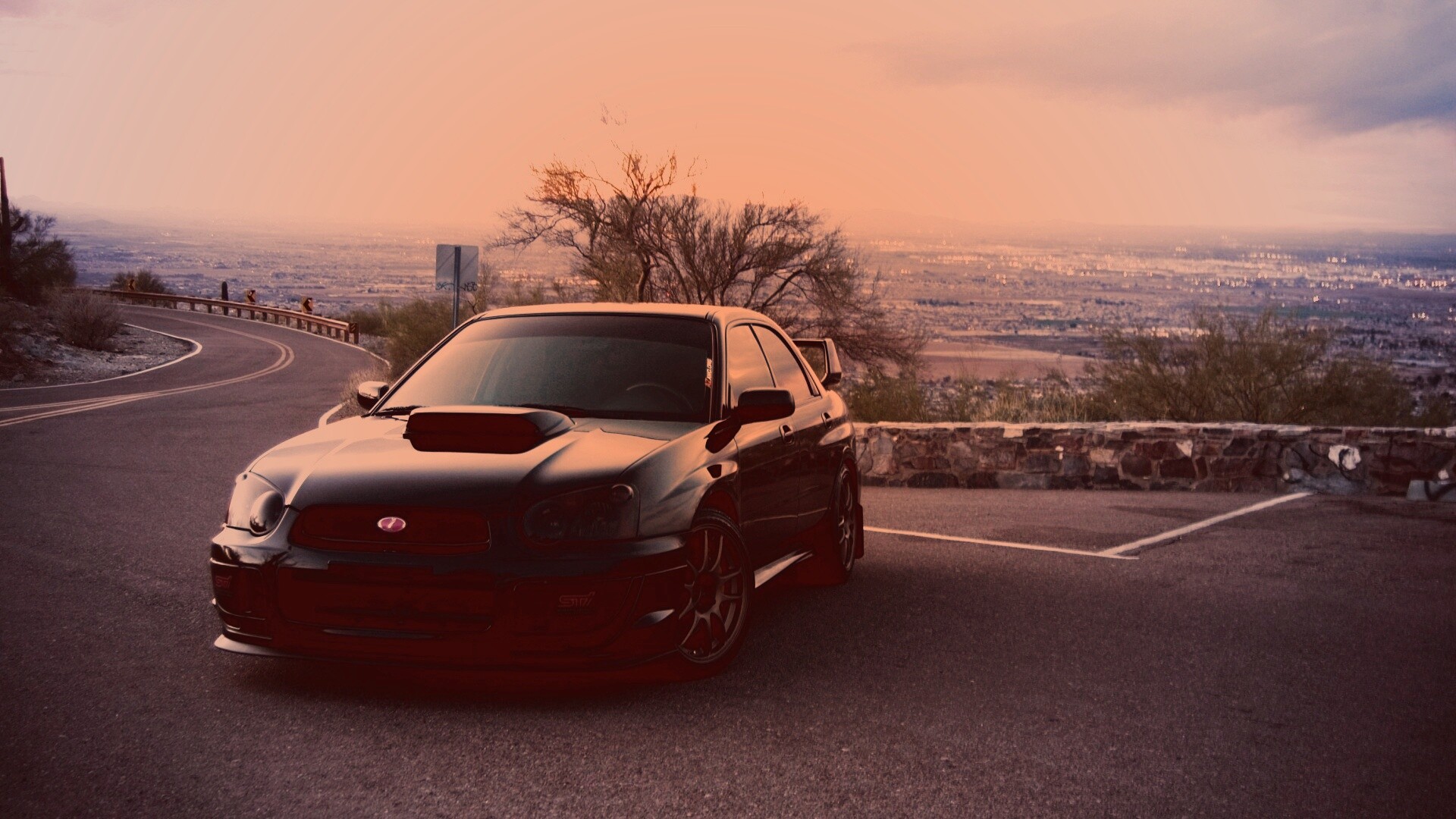 Обои для рабочего стола «Субару на смотровой алощадке в горах» 1920х1080 с фильтром toaster (оригинал 2980х1860)