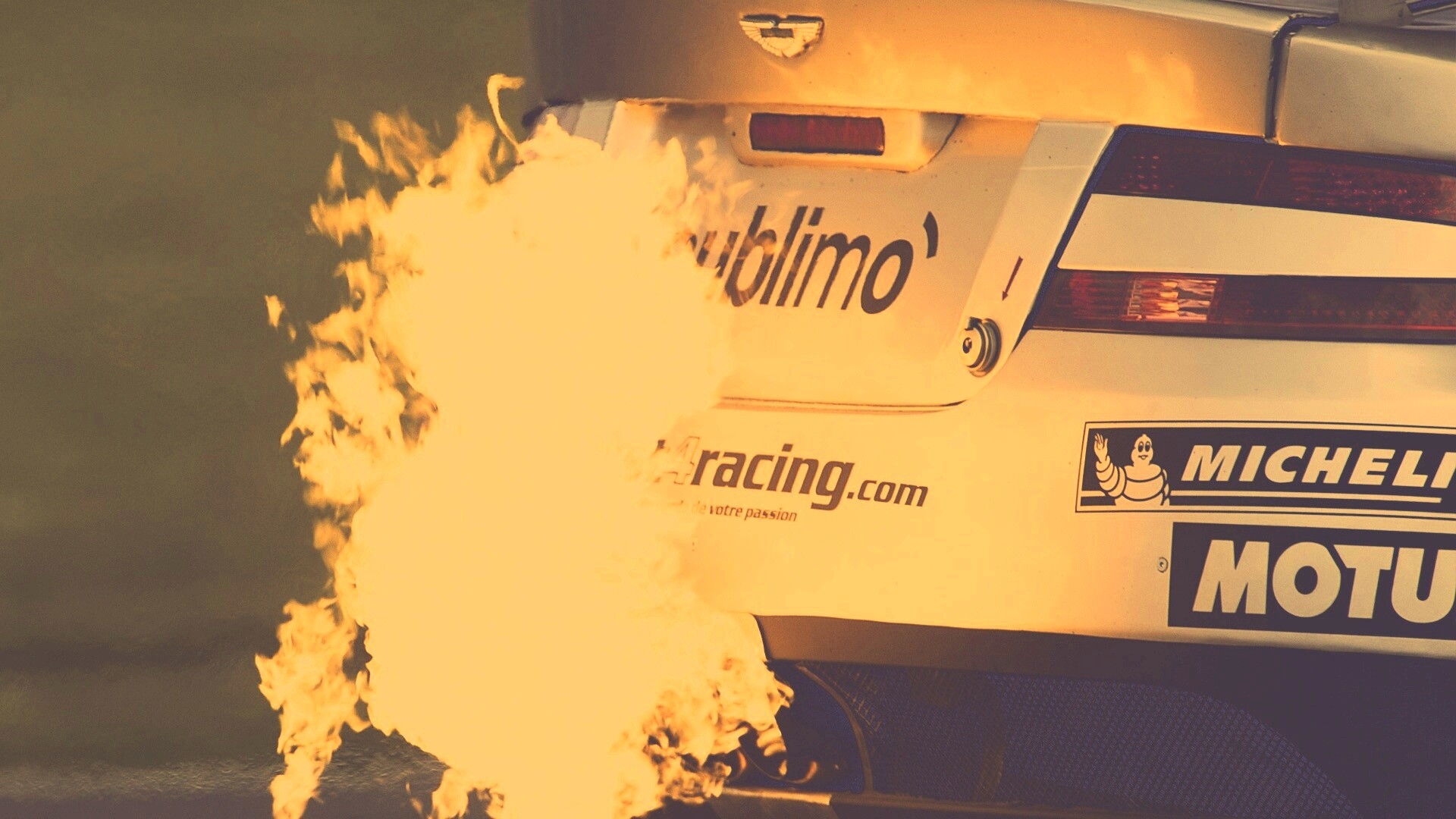 «Огонь из выхлопной трубы гоночного Aston Martin»