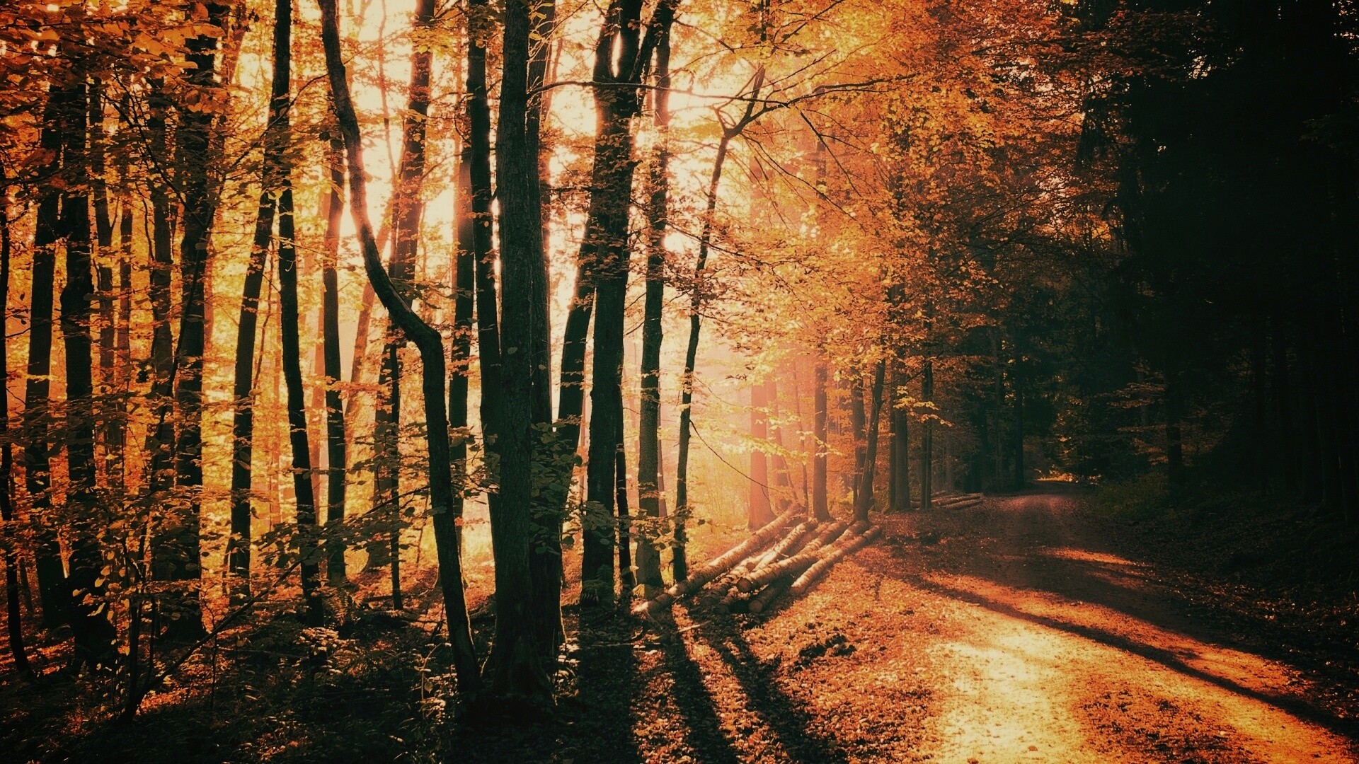 «Дорога вдоль просеки в осеннем лесу»