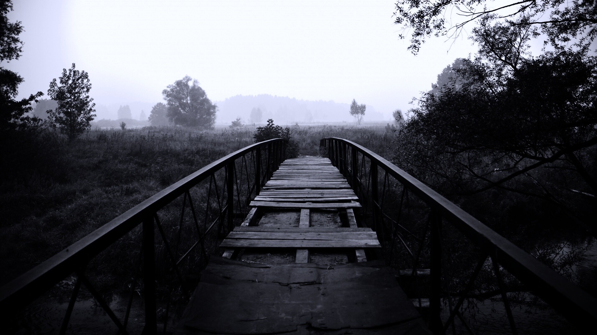 «Старый мост на черно-белом фото»