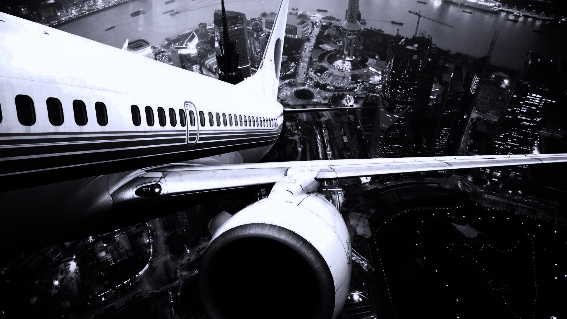 Обои для рабочего стола «Взлет над городом» 1920х1080 с фильтром gotham (оригинал 2560х1600)