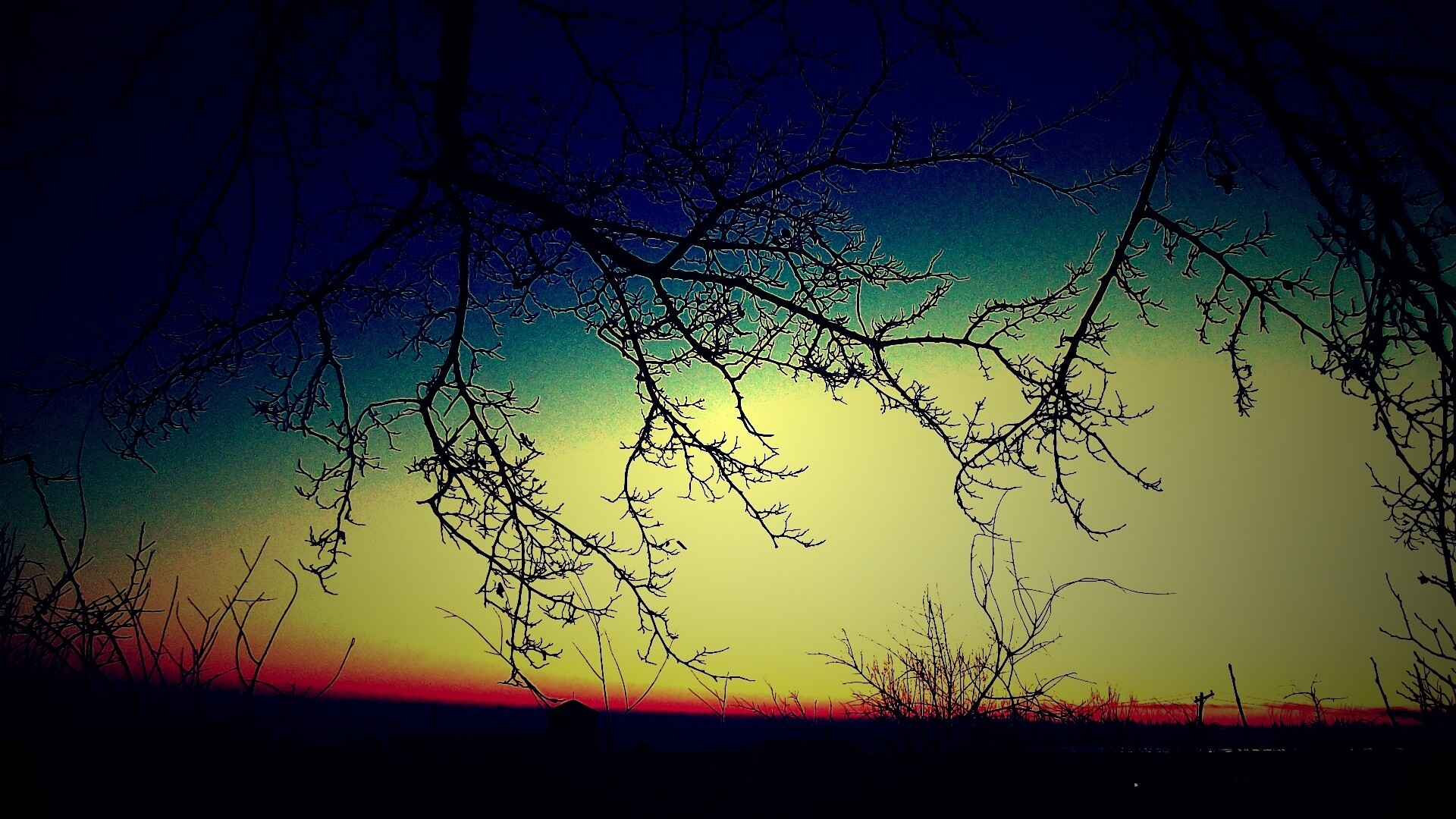 «Закат сквозь ветки деревьев»