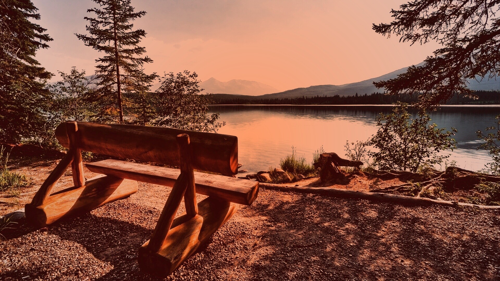 «Деревянная скамья на берегу озера»