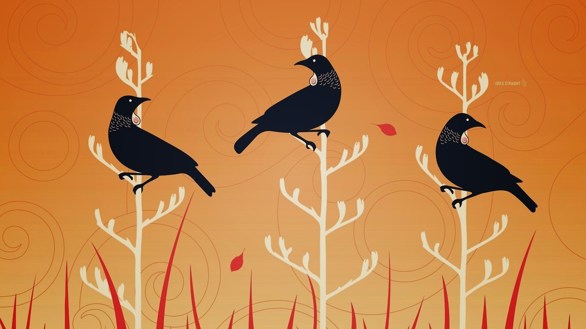 «Векторные стилизованные птицы на ветках дерева»