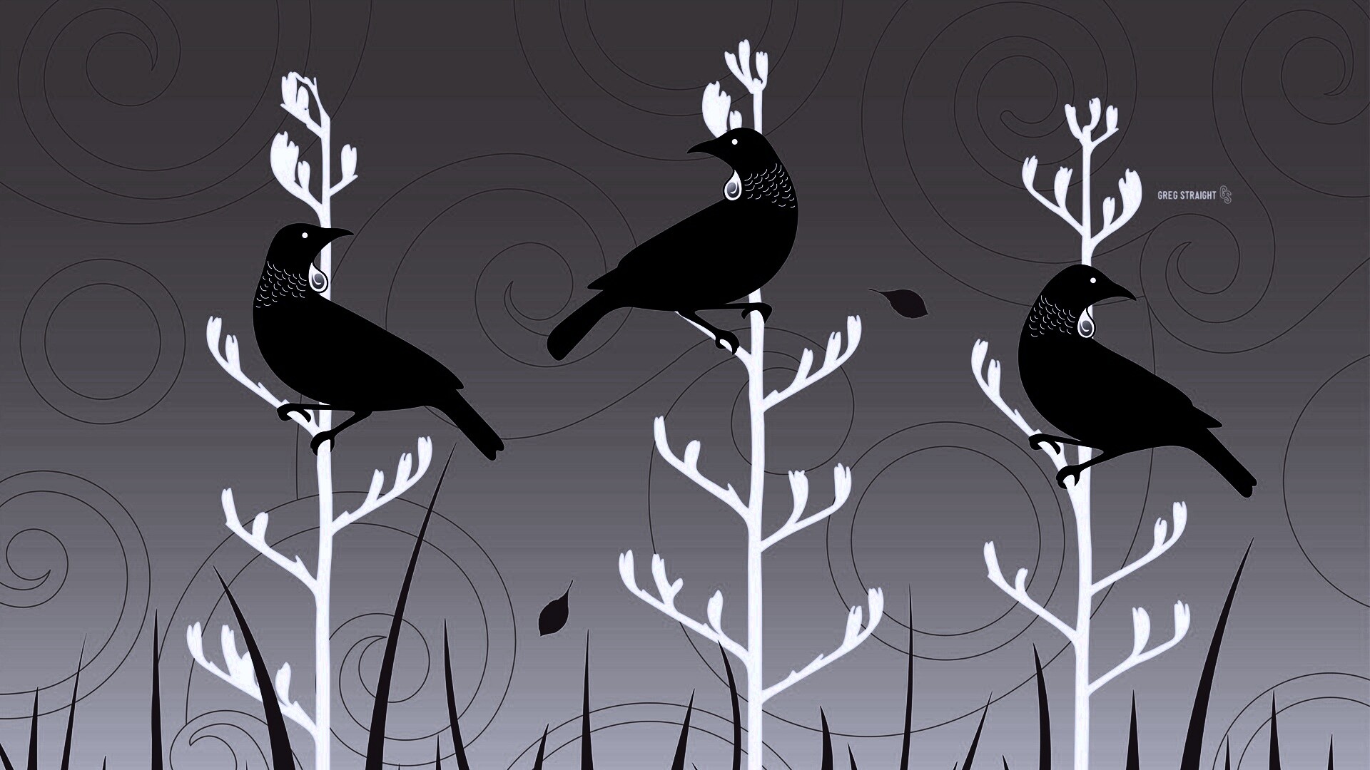 «Векторные стилизованные птицы на ветках дерева»