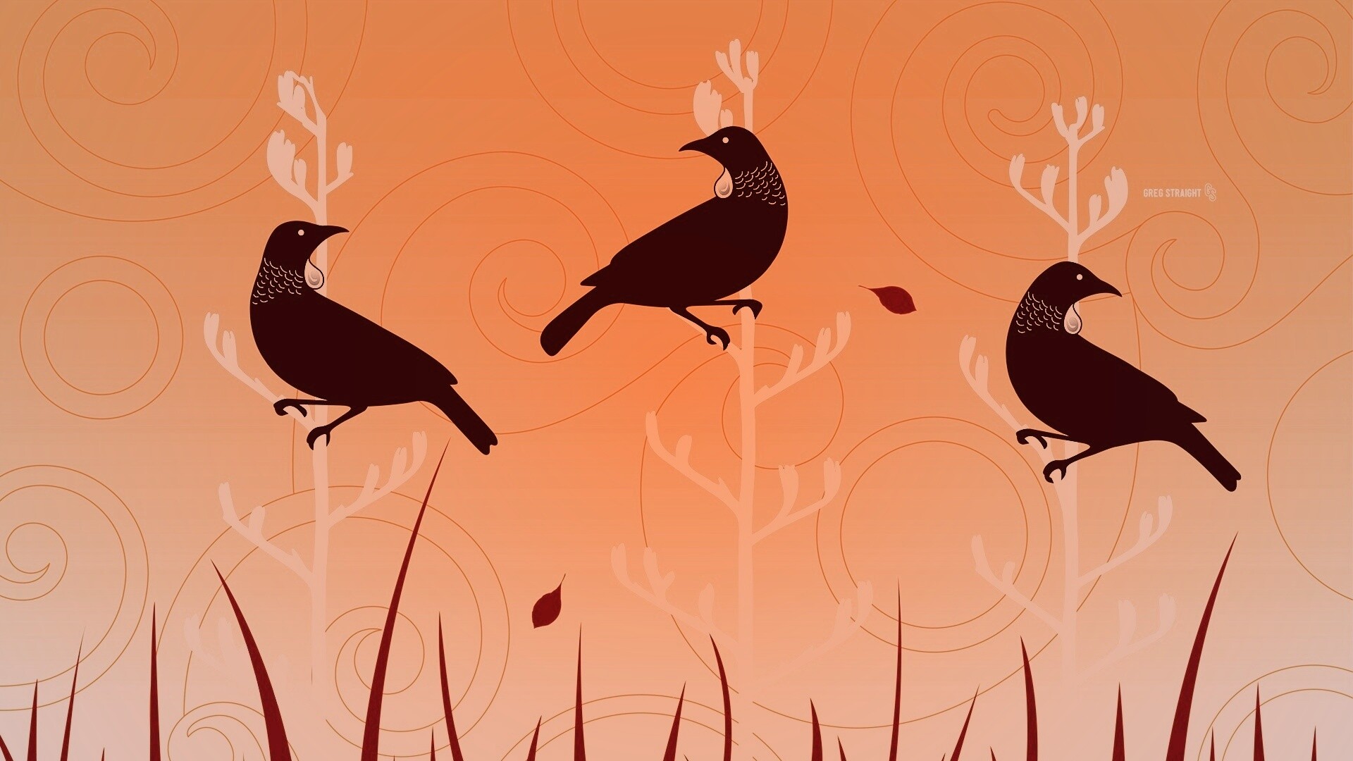 «Векторные стилизованные птицы на ветках дерева»