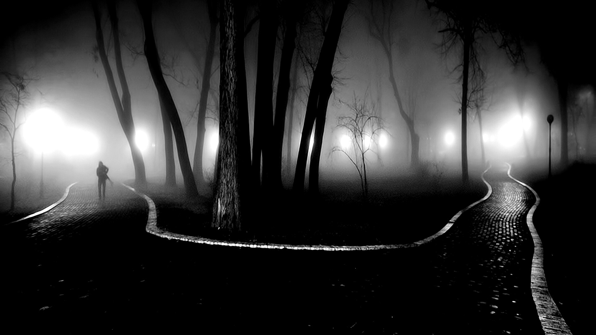 Обои для рабочего стола «Пустынный лабиринт парковых дорожек» 1920х1080 с фильтром inkwell (оригинал 1920х1440)