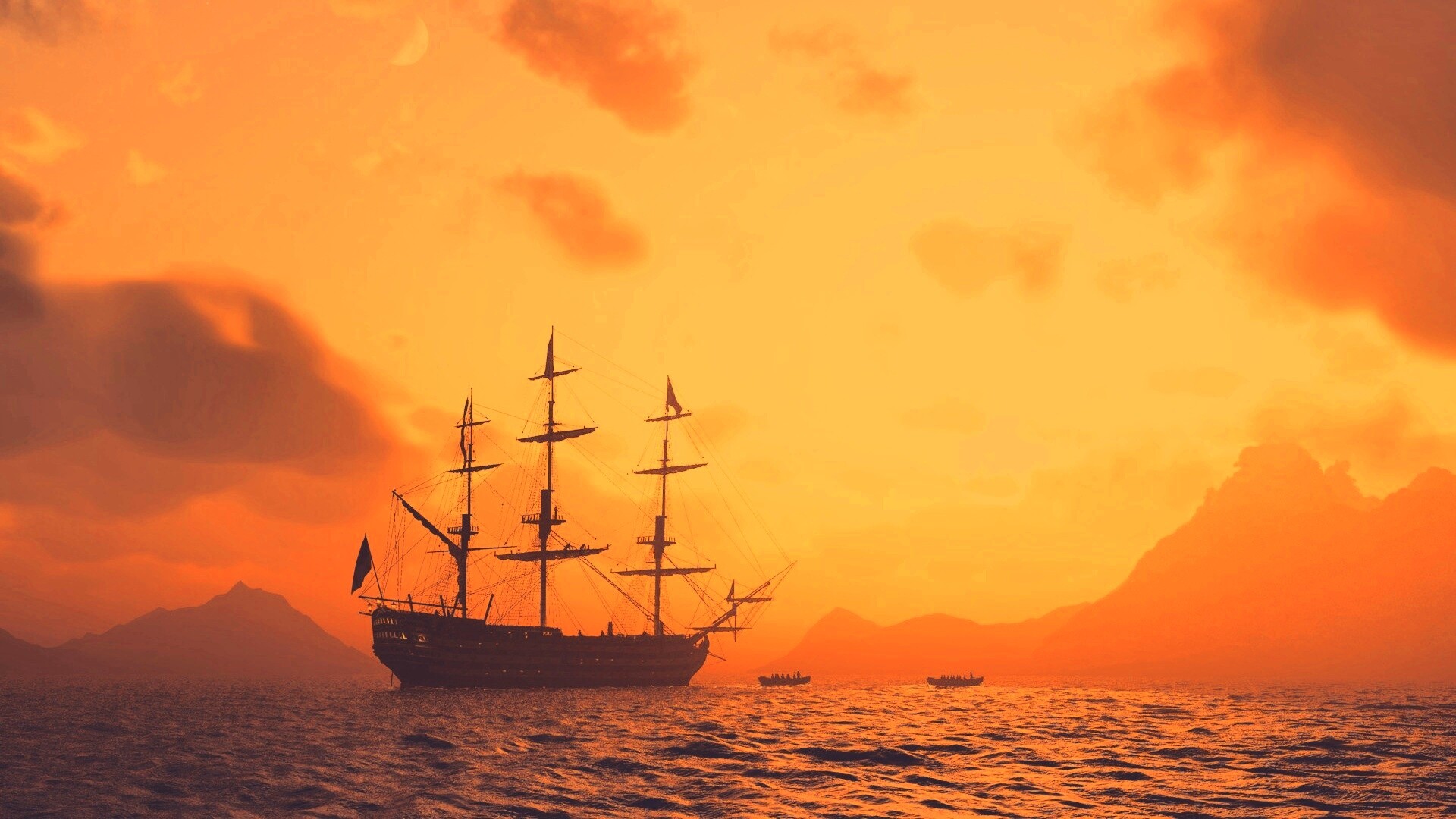 «Трехпалубный парусный корабль на закате»