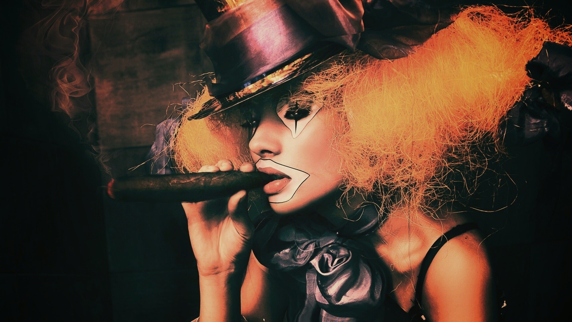 «Девушка клоун курит сигару»