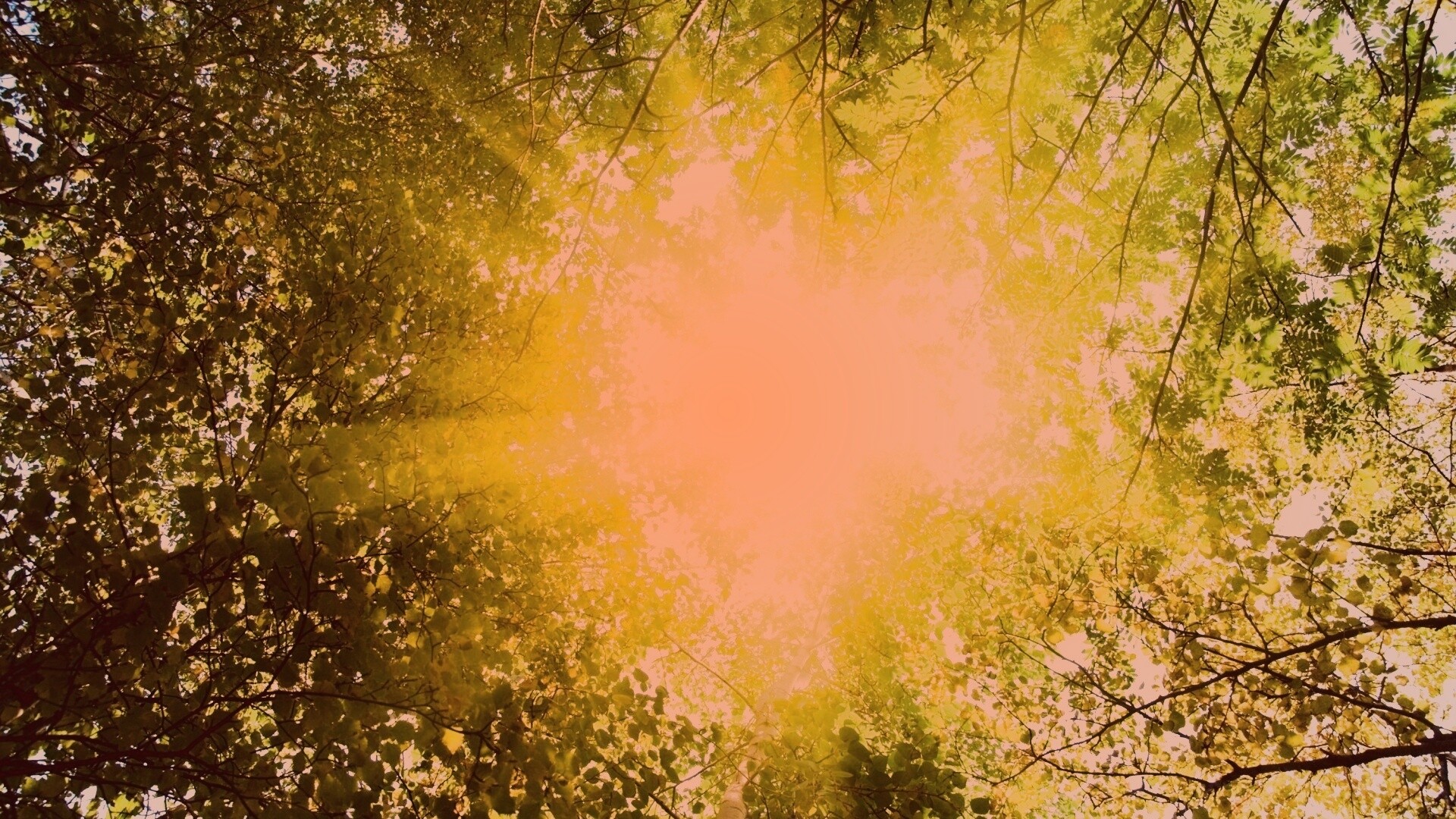 Обои для рабочего стола «Яркий зеленоватый свет пробивающийся сквозь листву» 1920х1080 с фильтром toaster (оригинал 3000х2000)