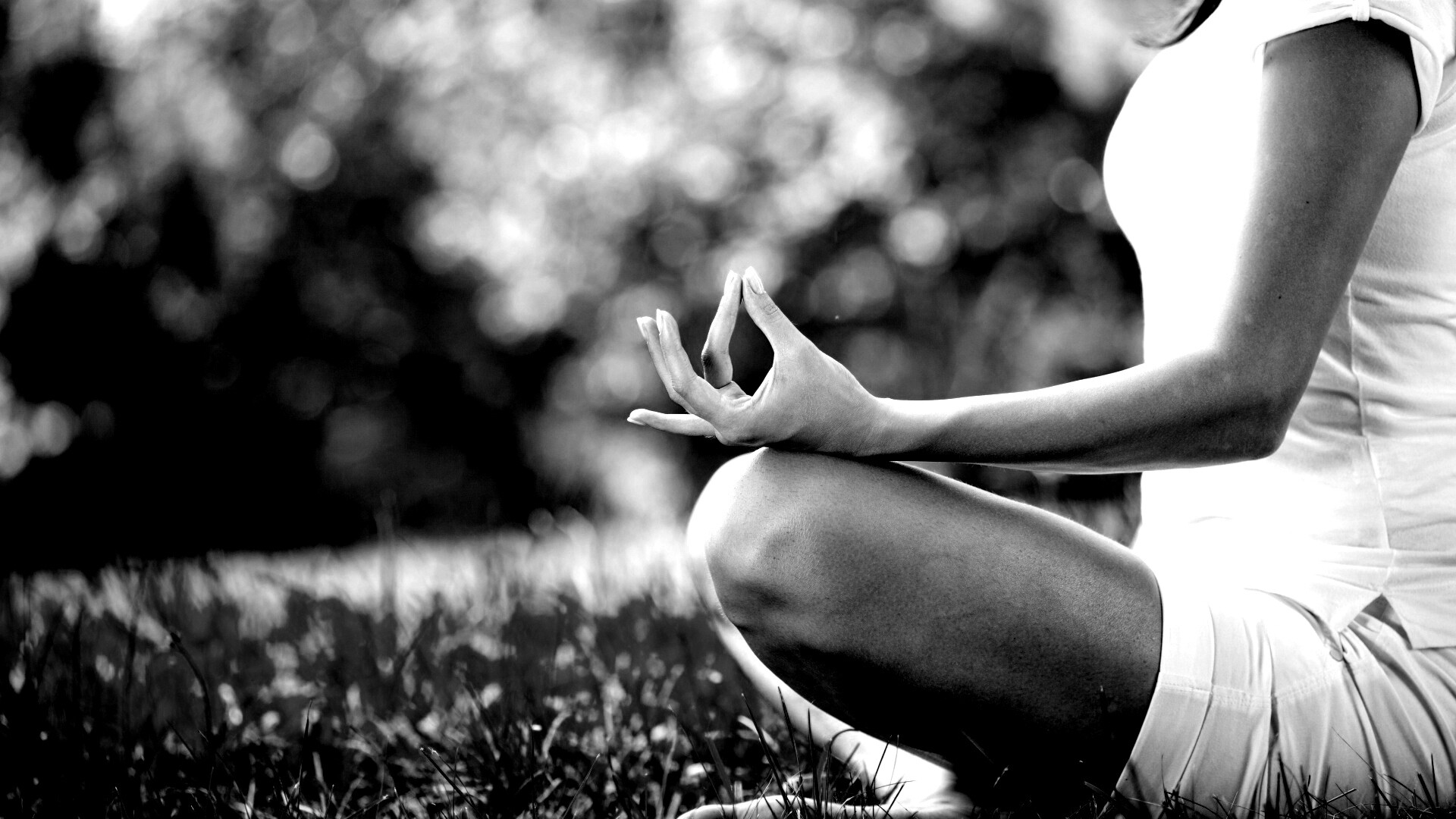 «Девушка медитирует в позе лотоса на траве»