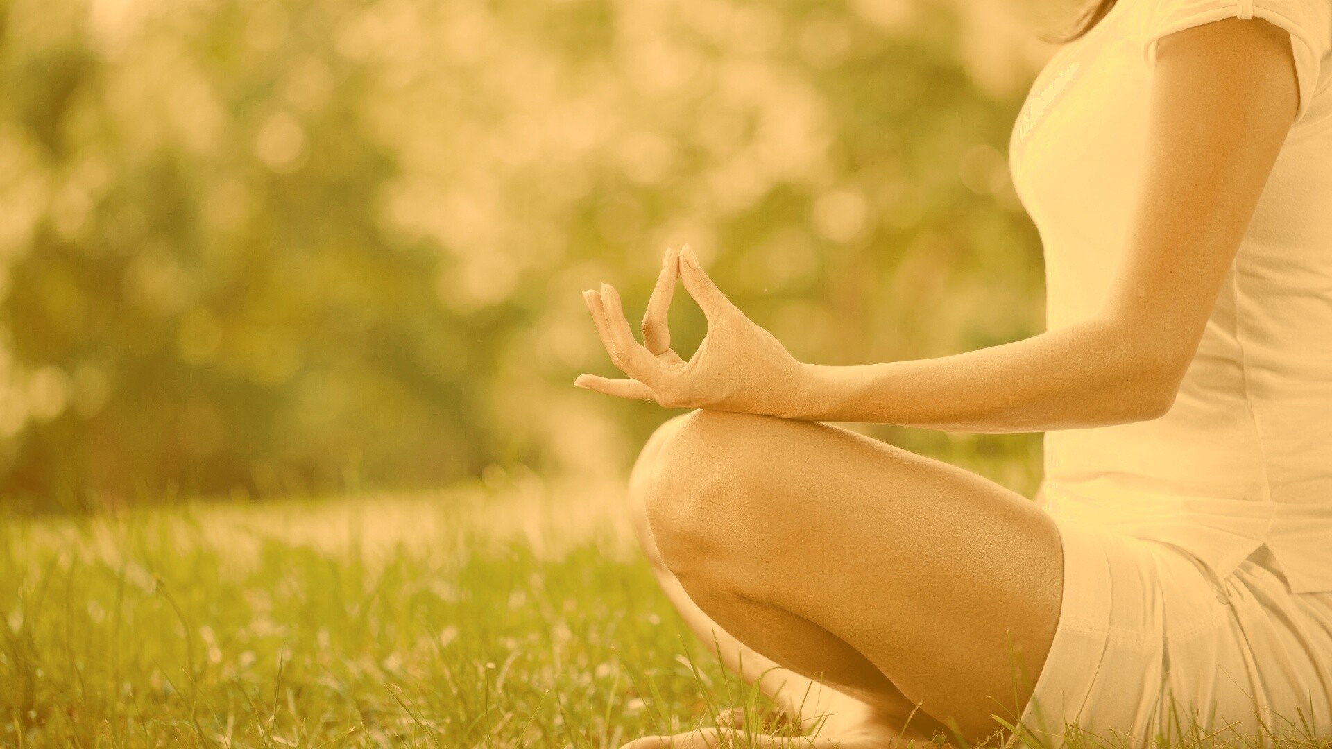 «Девушка медитирует в позе лотоса на траве»