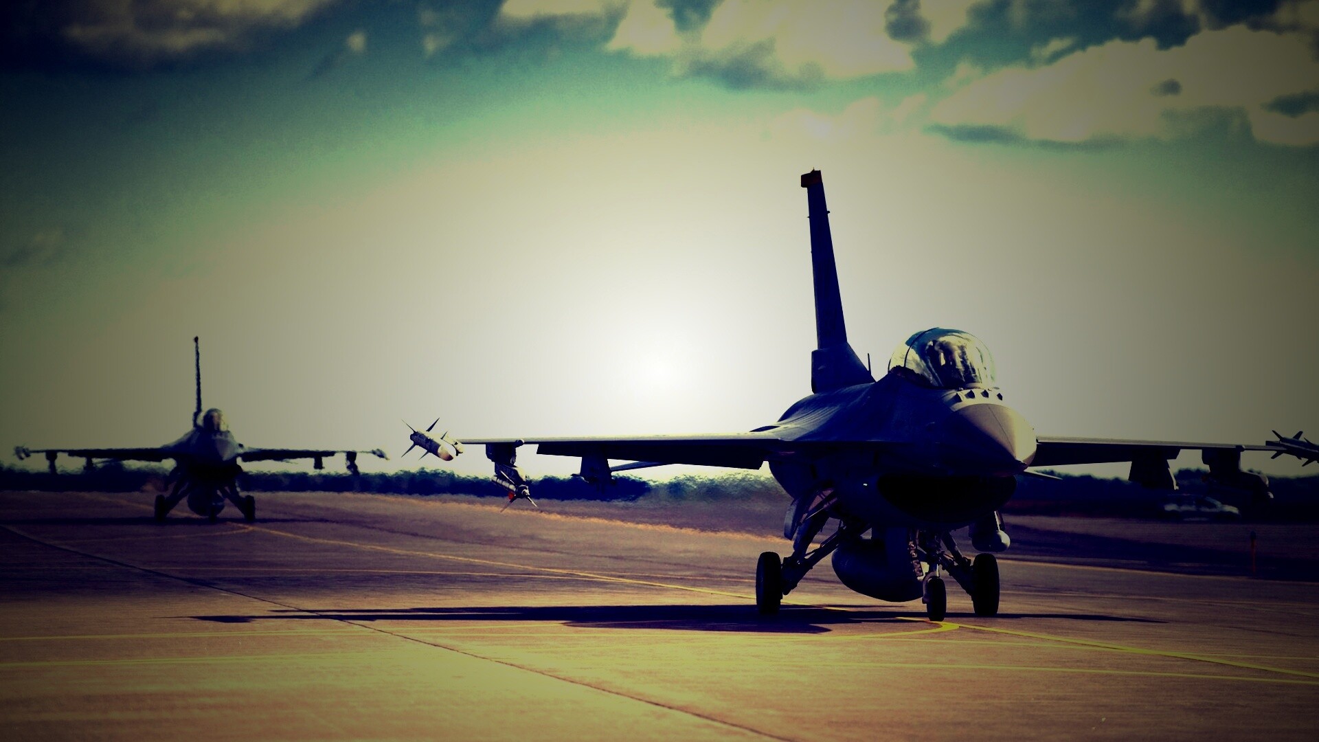 «Истребители f16 Falcon на взлетной полосе»