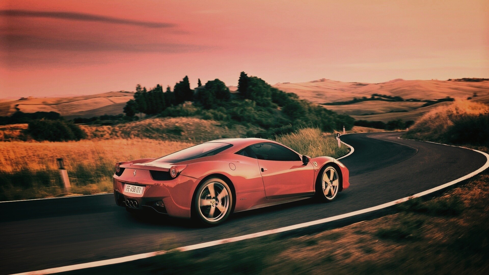 «Красная феррари на извилистой дороге»