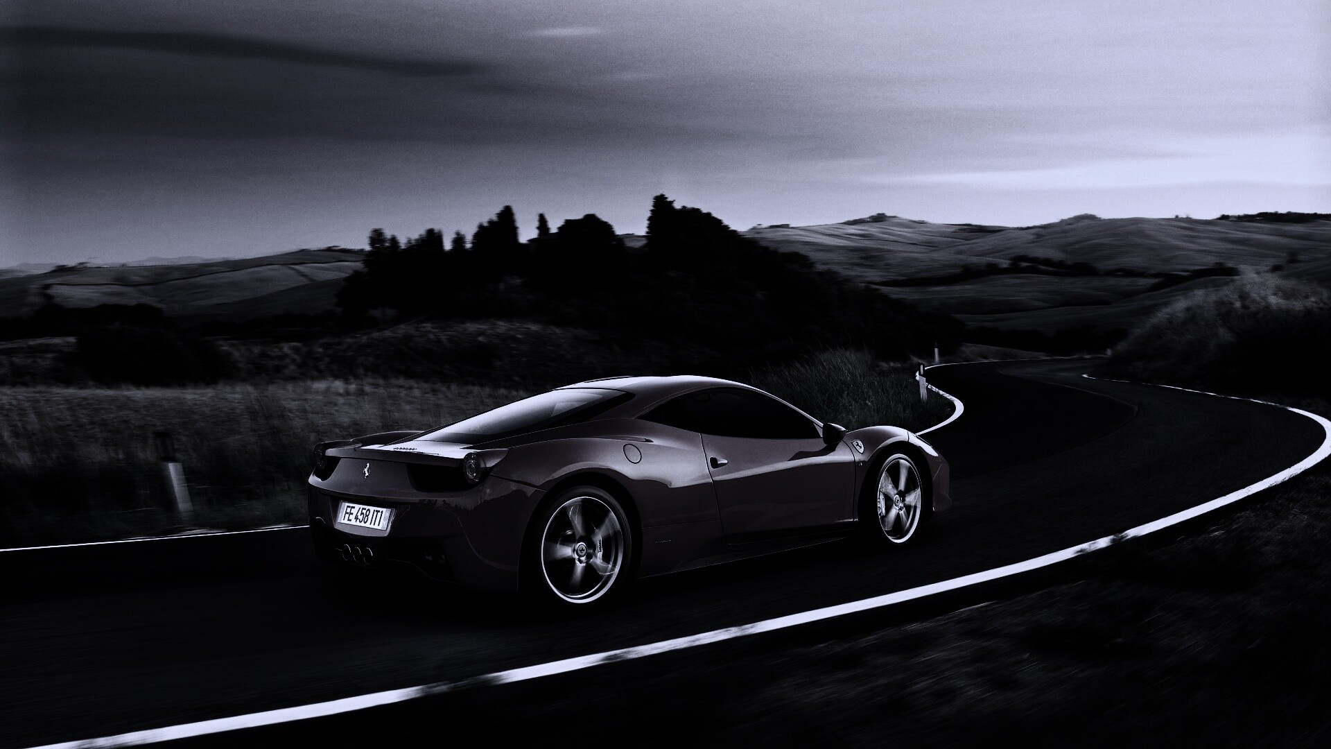 «Красная феррари на извилистой дороге»