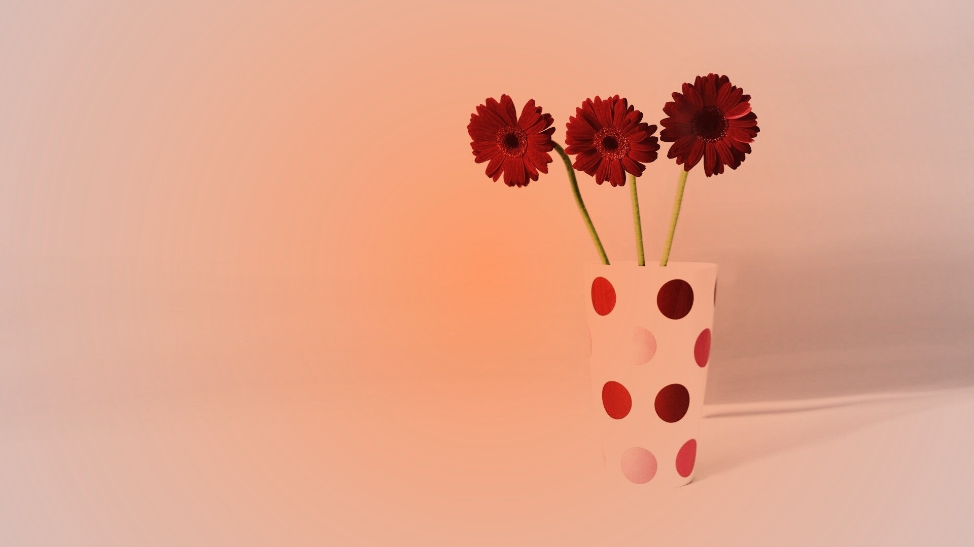 Обои для рабочего стола «Вазочка с тремя красными герберами» 1920х1080 с фильтром toaster (оригинал 1920х1200)