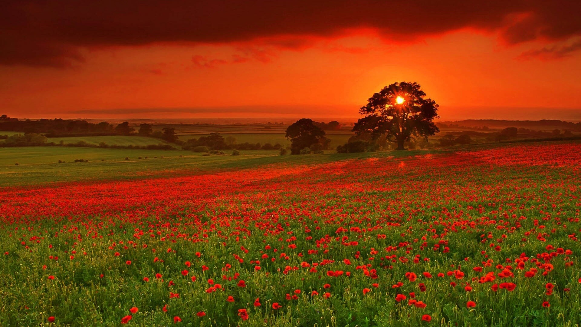 «Закат на поле красных цветов»