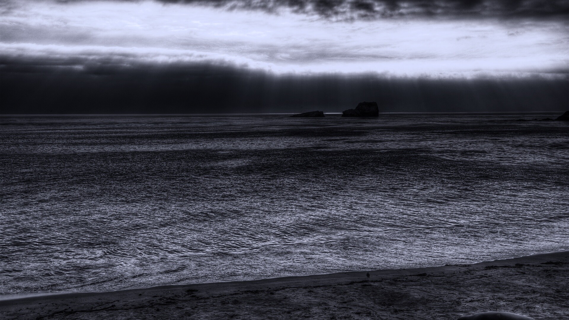 «Пляж на фоне светящегосы неба»