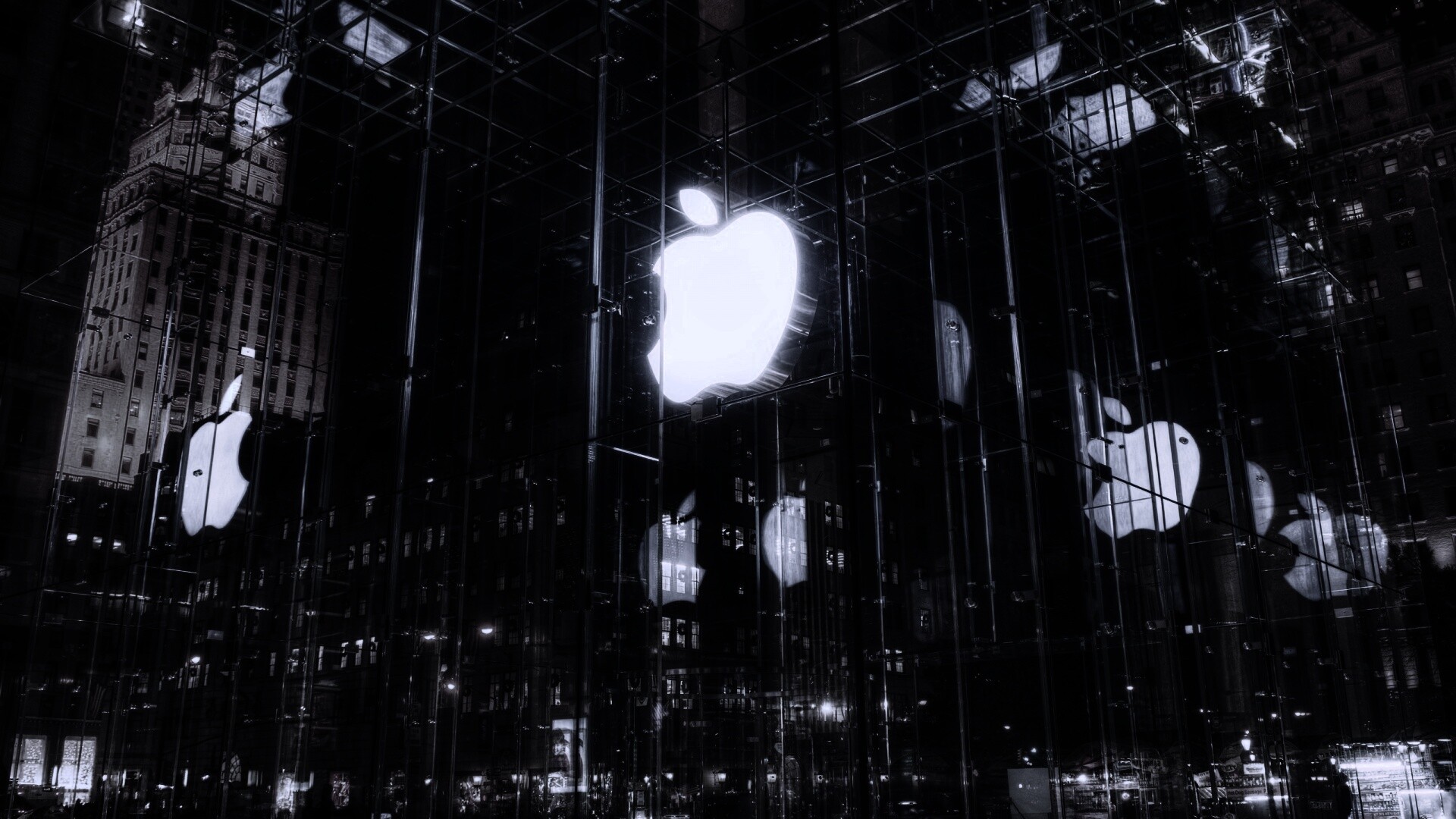 «Отражение логотипа Apple в стеклянном здании»