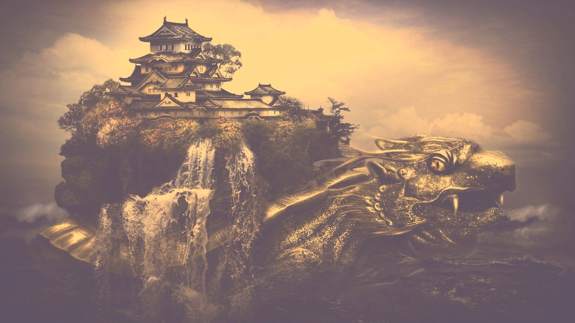 «Золотая черепаха и китайская пагода в океане»