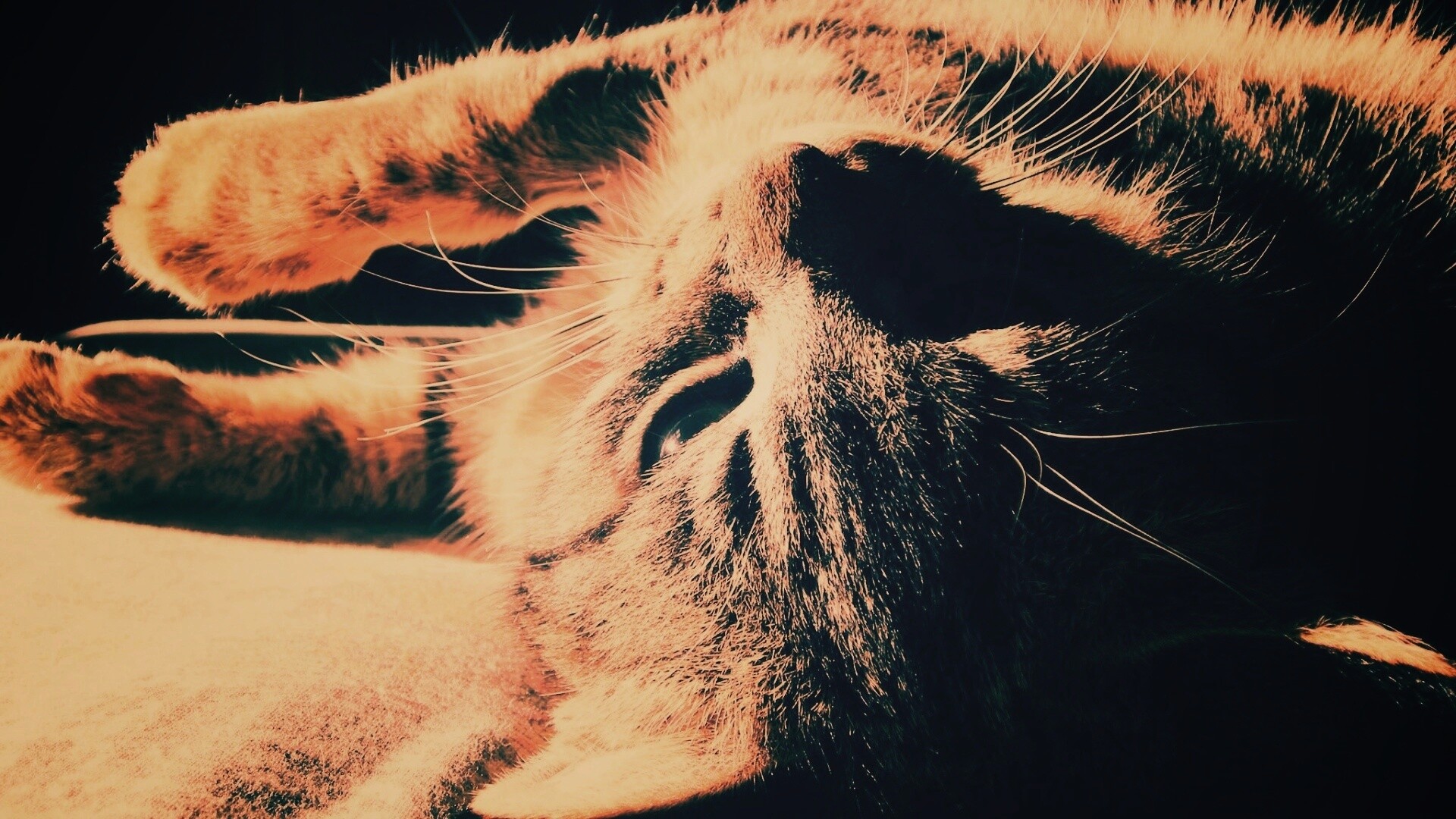 Обои для рабочего стола «Нежащийся кот» 1920х1080 с фильтром earlybird (оригинал 2048х1536)