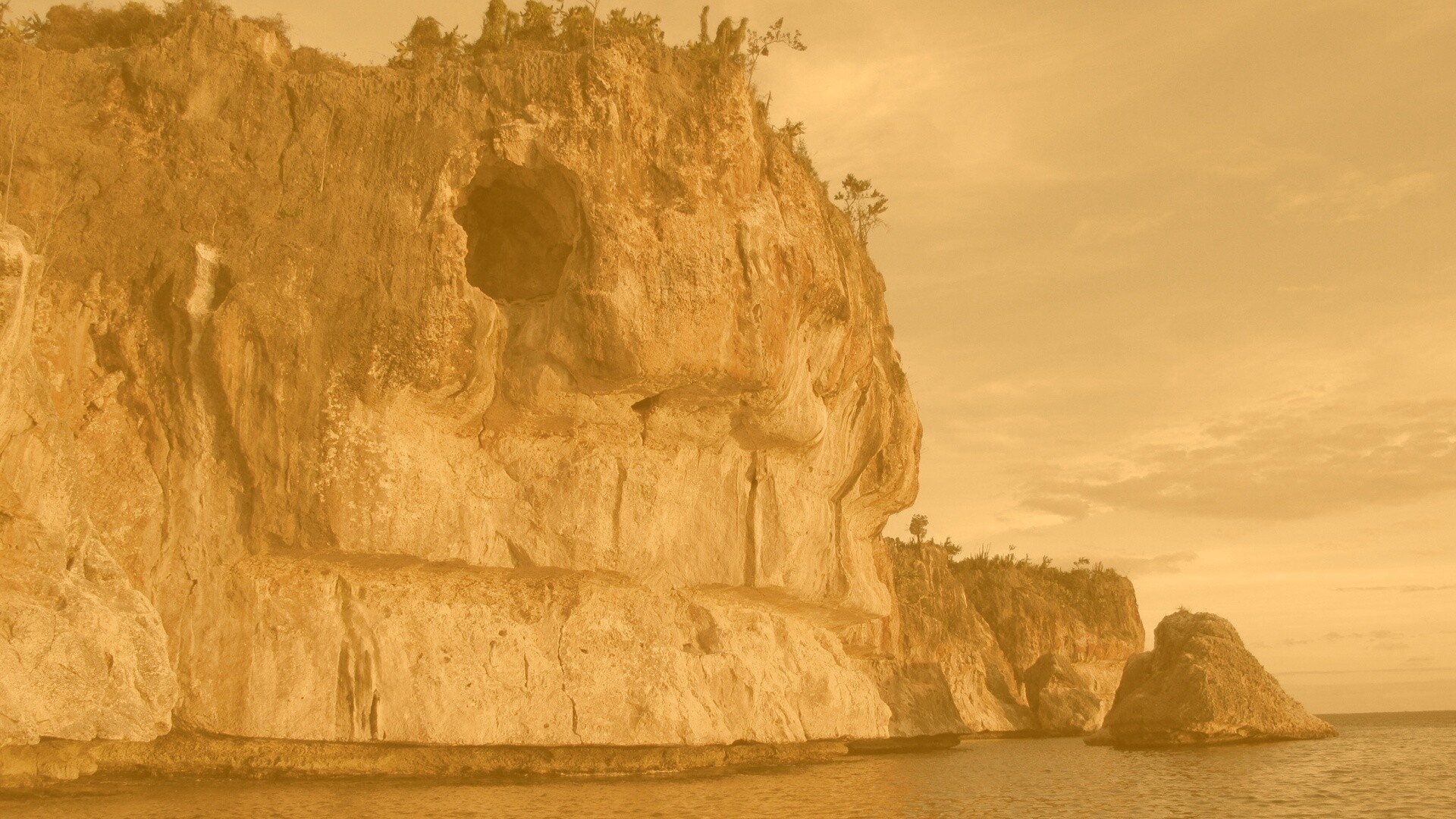 Обои для рабочего стола «Пещера в скале над морем» 1920х1080 с фильтром kelvin (оригинал 2560х1600)