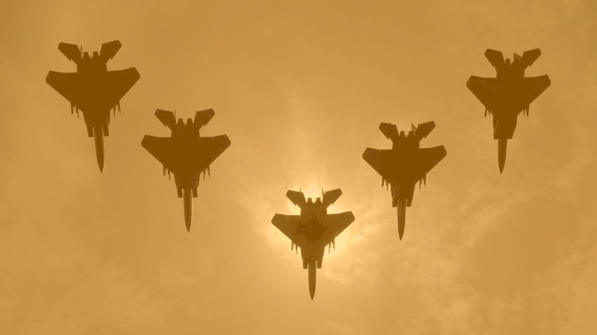 «Ряд истрибителей на фоне солнца»