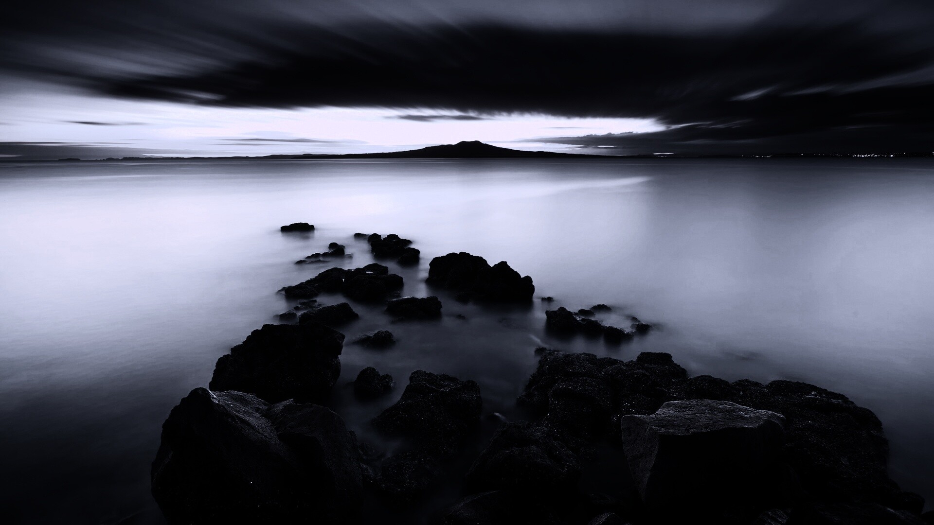 Обои для рабочего стола «Озеро в тумане» 1920х1080 с фильтром gotham (оригинал 1920х1200)