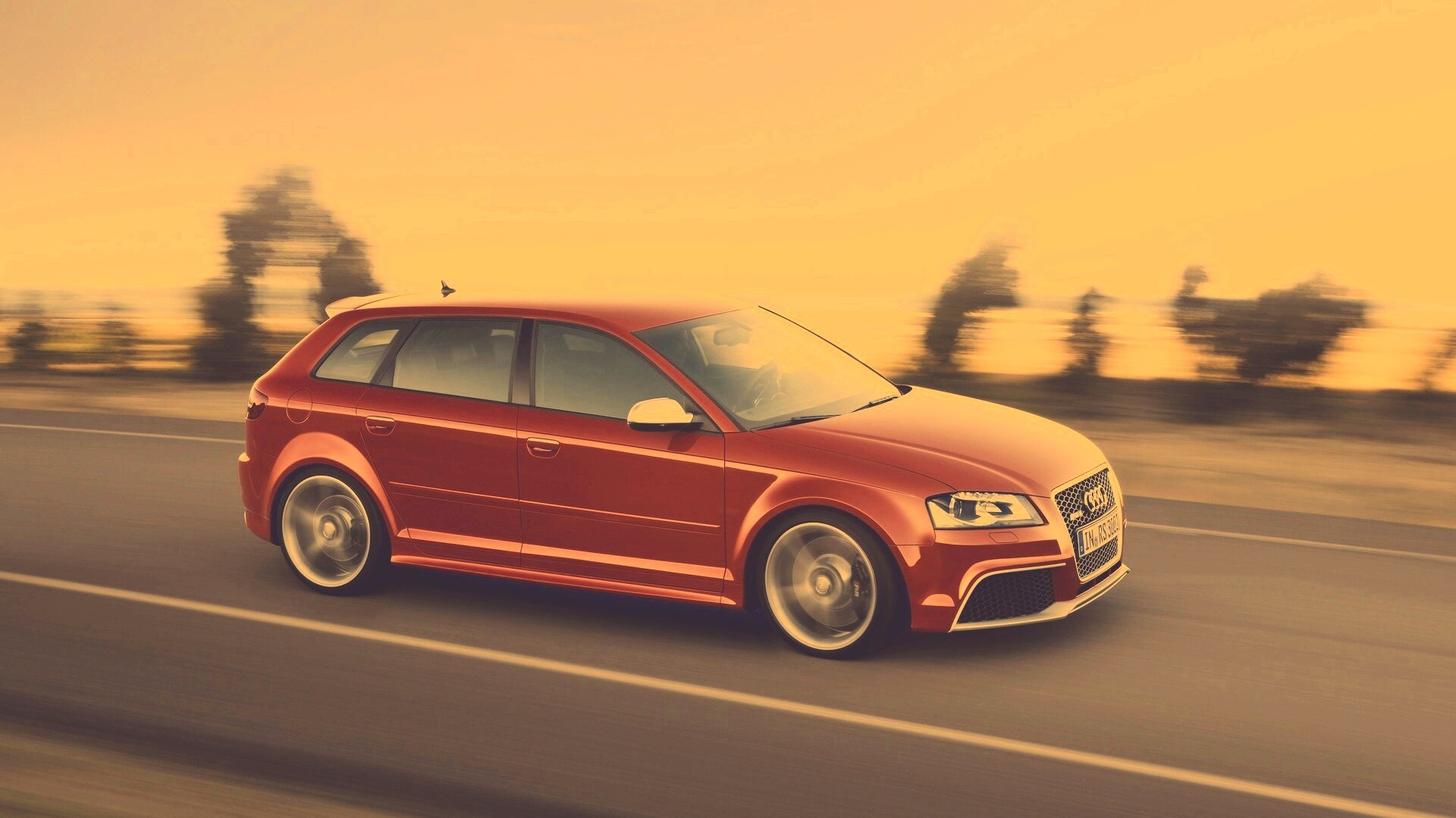 «Красная Audi модели RS3 на дороге»