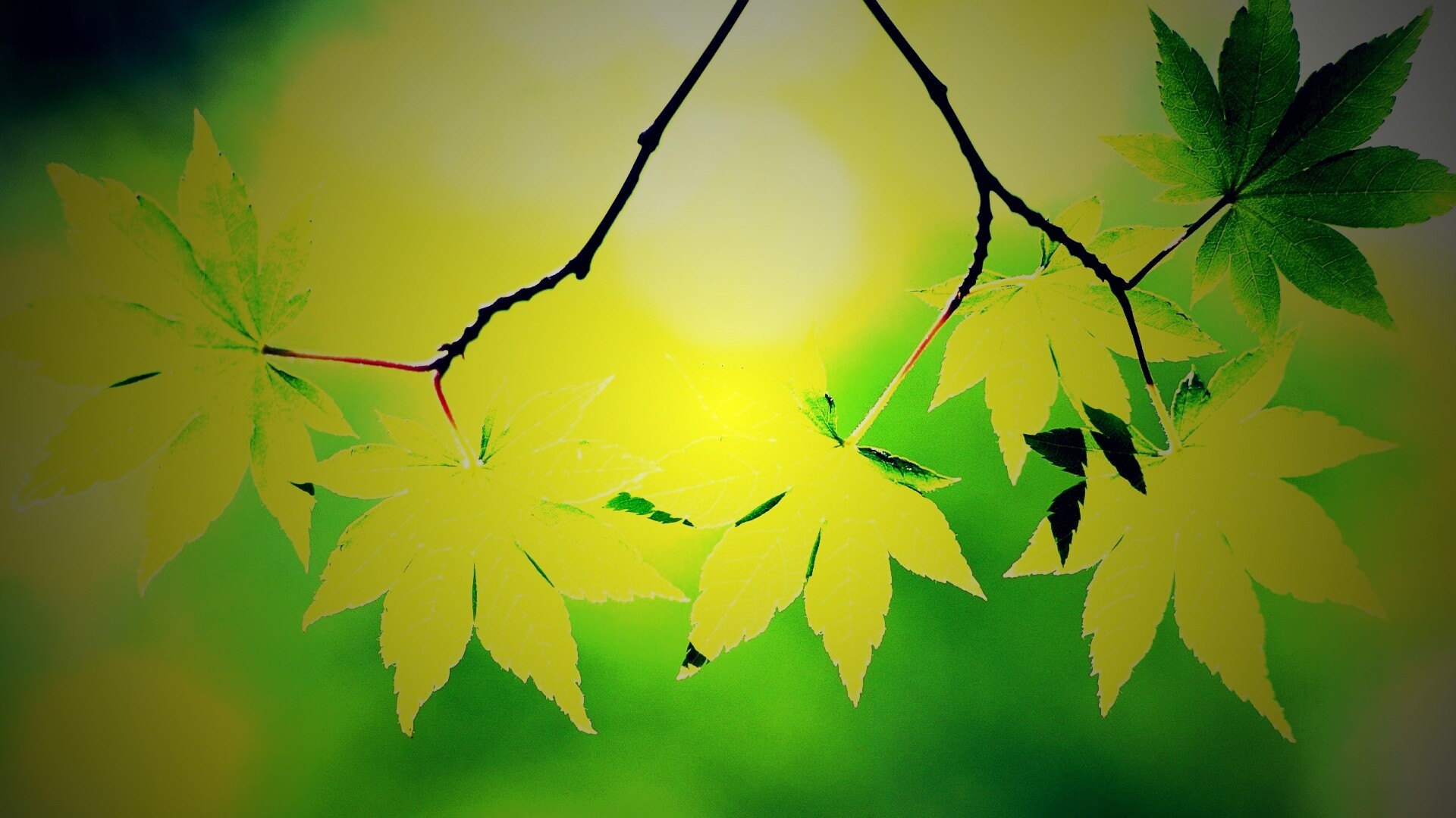 Обои для рабочего стола «Зелёные листья» 1920х1080 с фильтром lomo (оригинал 2560х1600)
