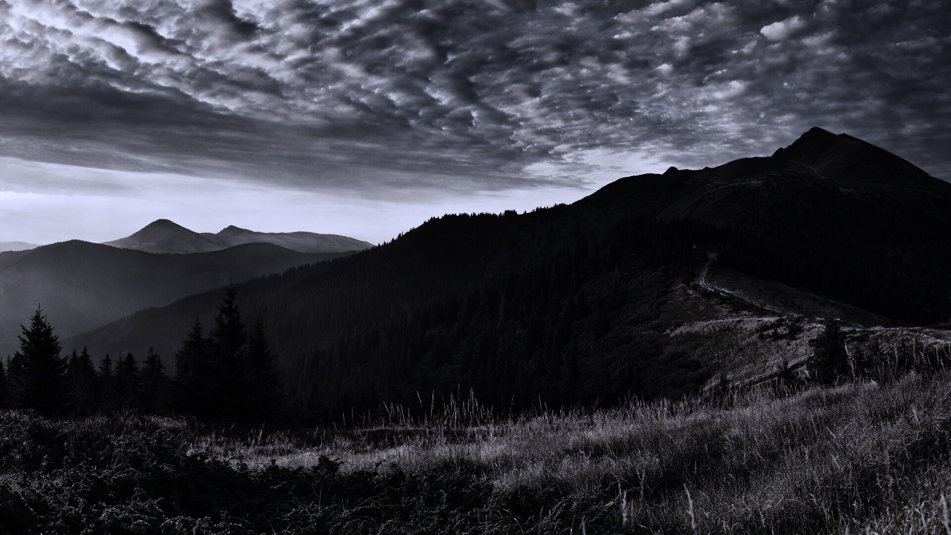 Обои для рабочего стола «Предгорье» 1920х1080 с фильтром gotham (оригинал 2560х1600)