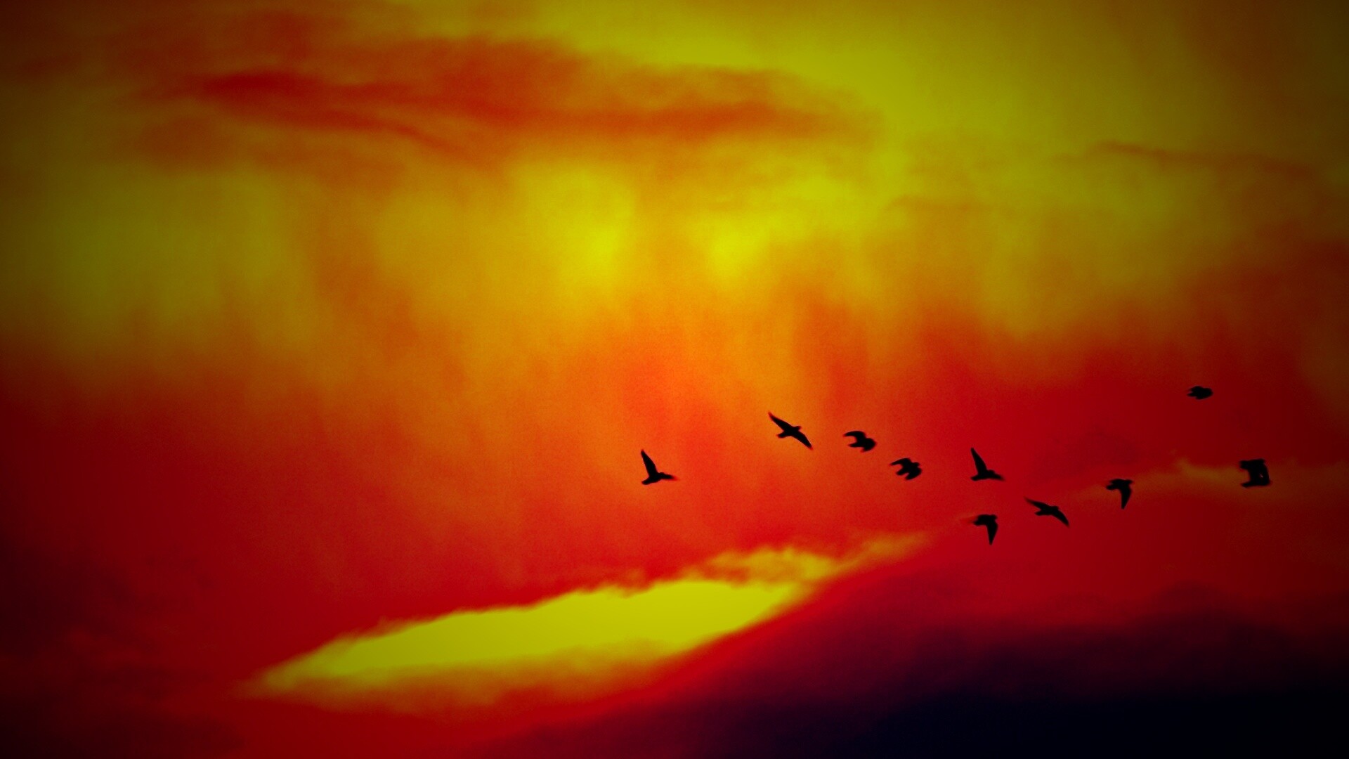 «Птицы летят в закатном небе»
